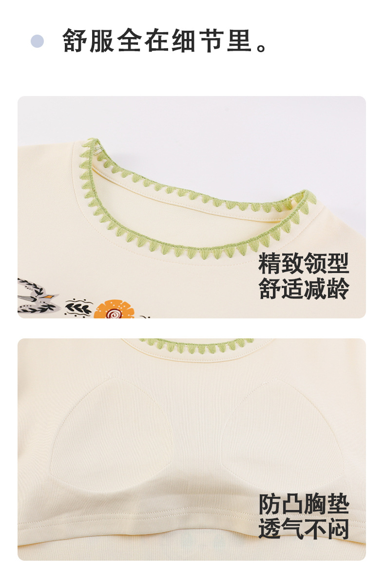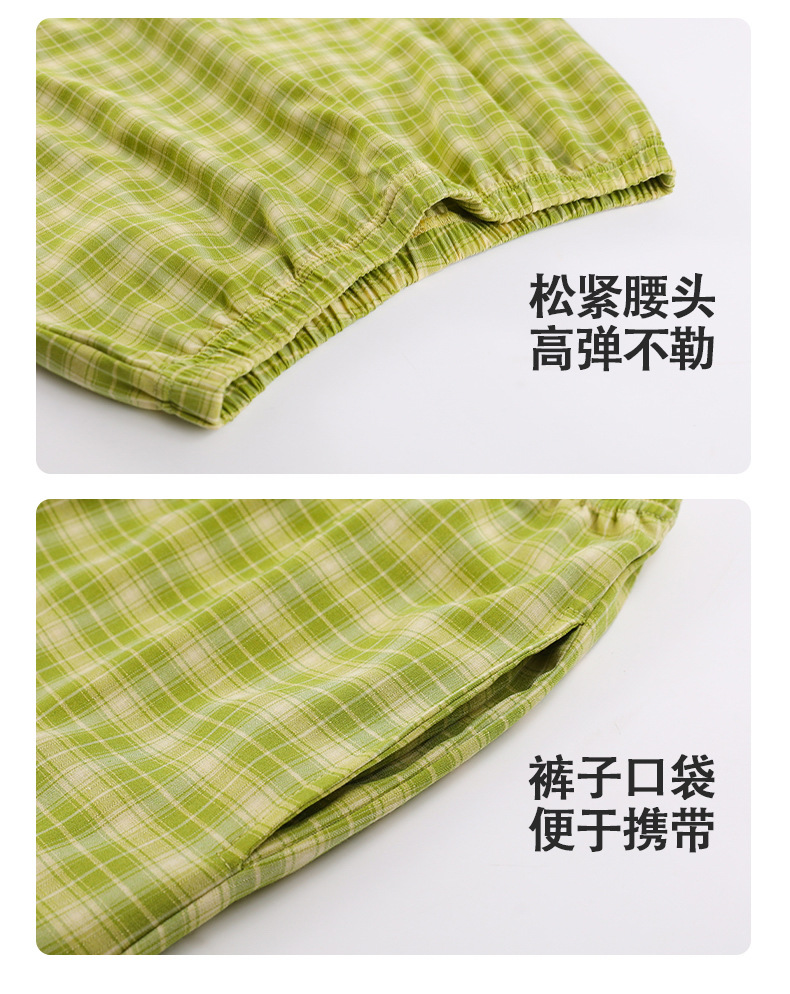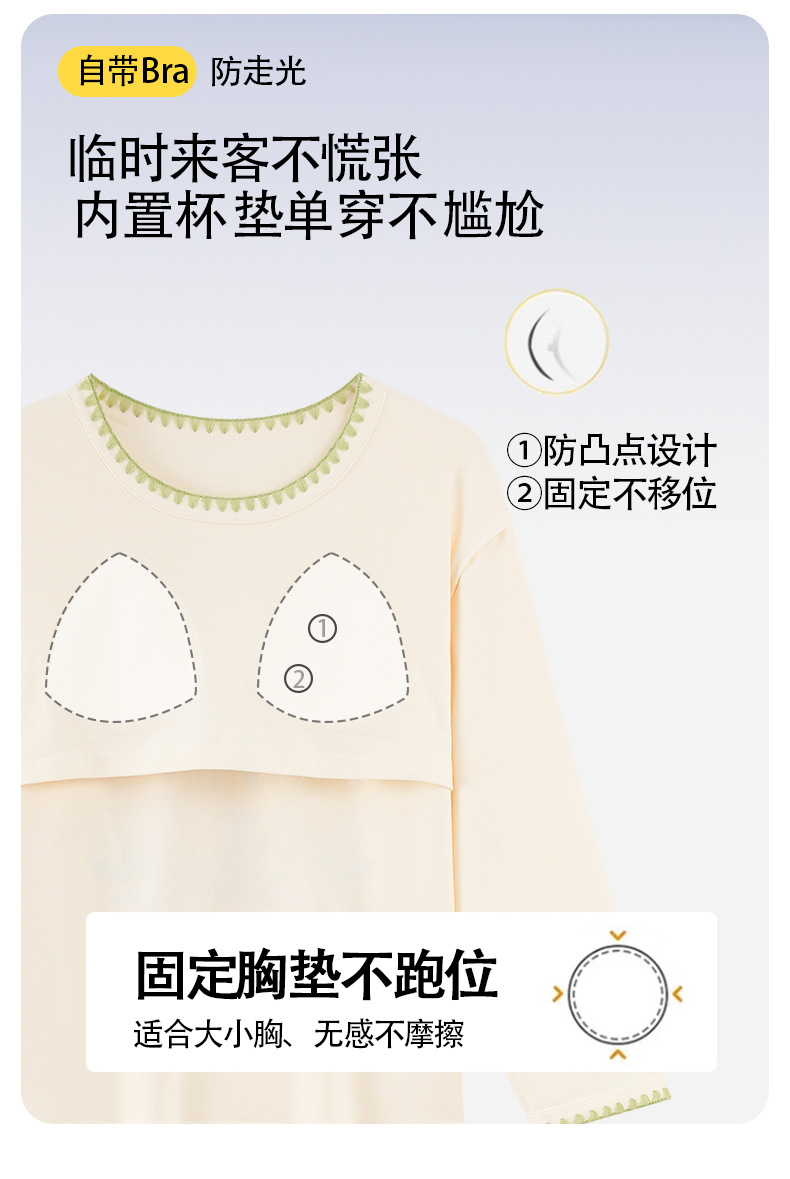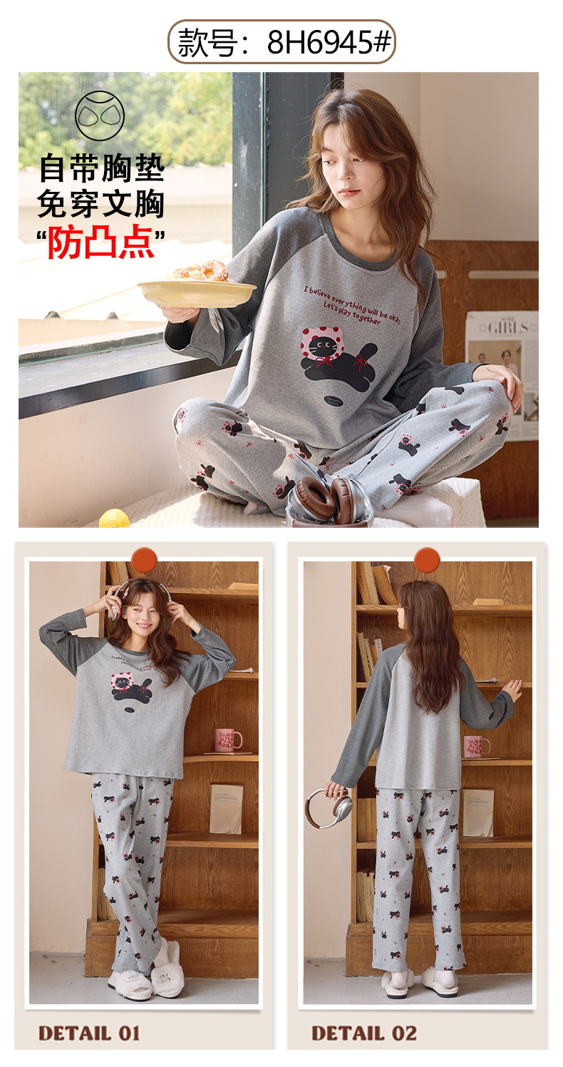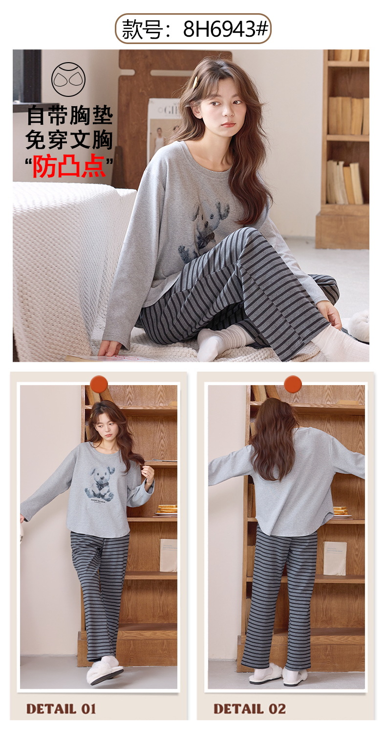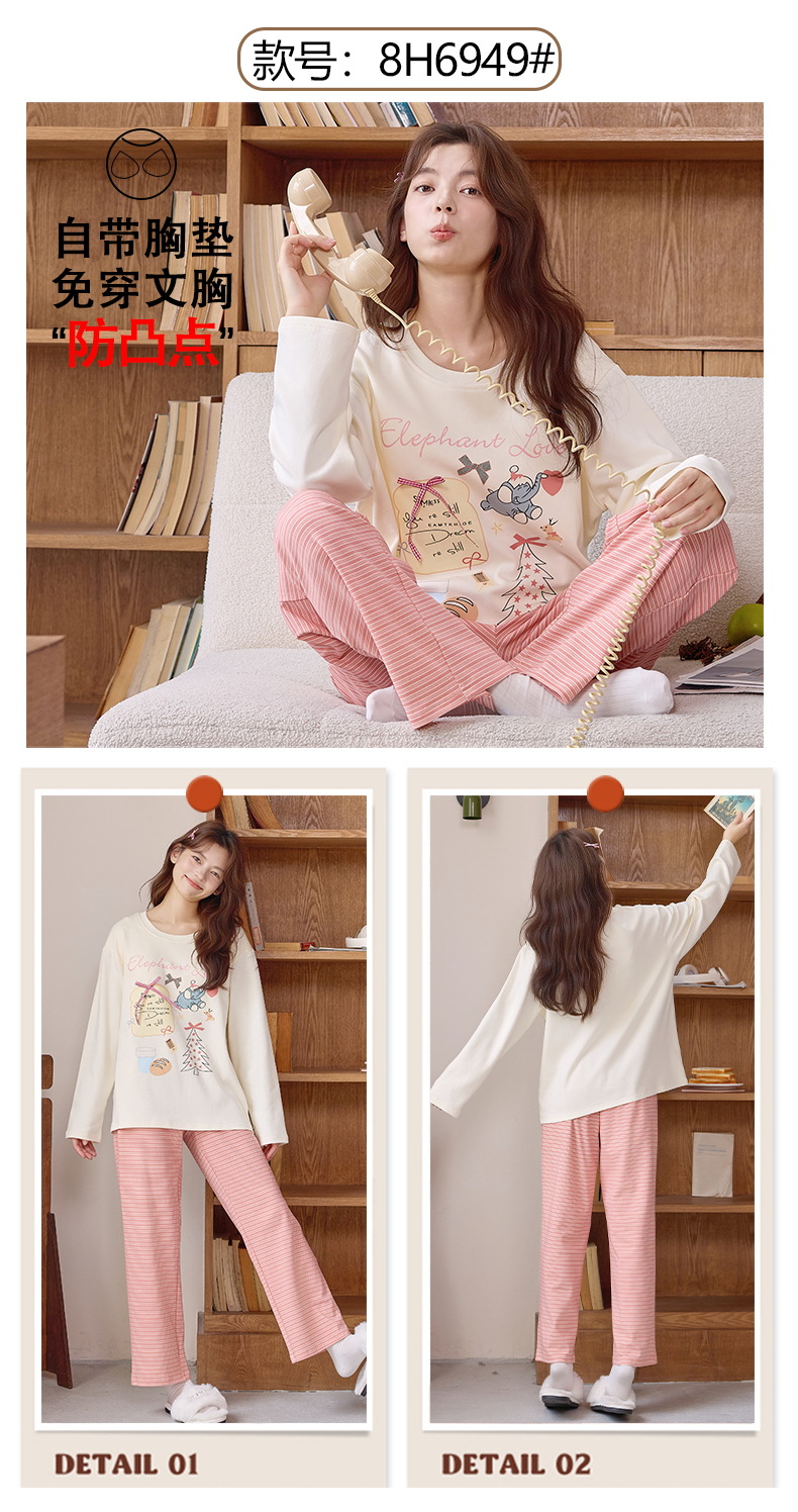 家居服新款学生可爱带胸垫睡衣女秋季套头长袖长裤甜美少女格子卡通可外穿秋冬家居服