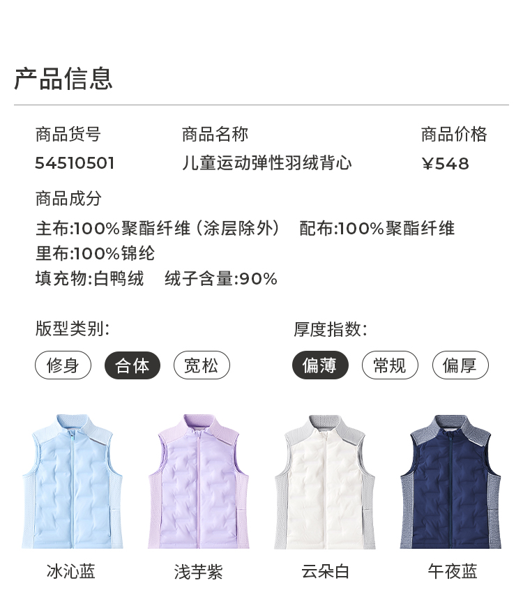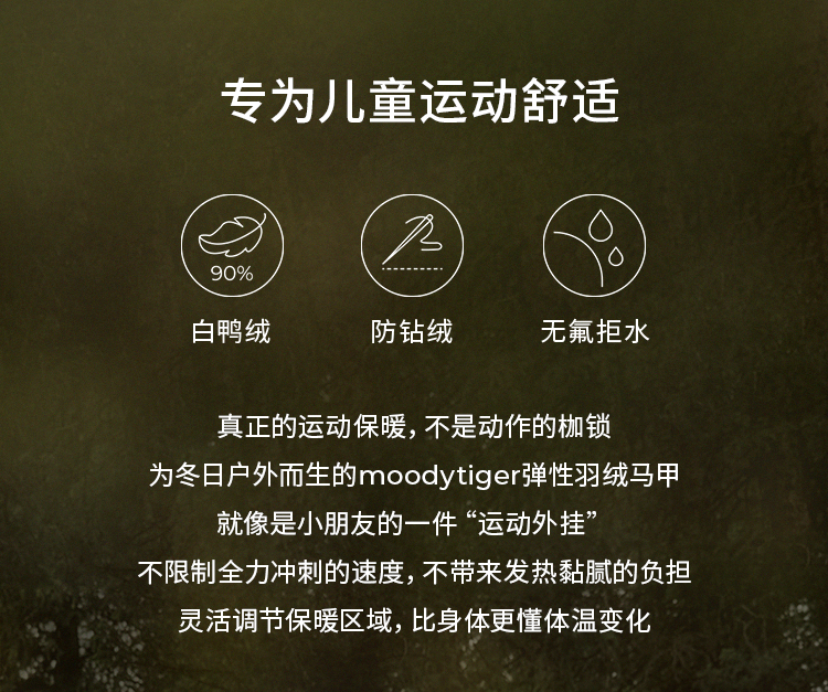 【大J同款】moodytiger儿童运动保暖锁温防风内胆弹性羽绒背心54510501
