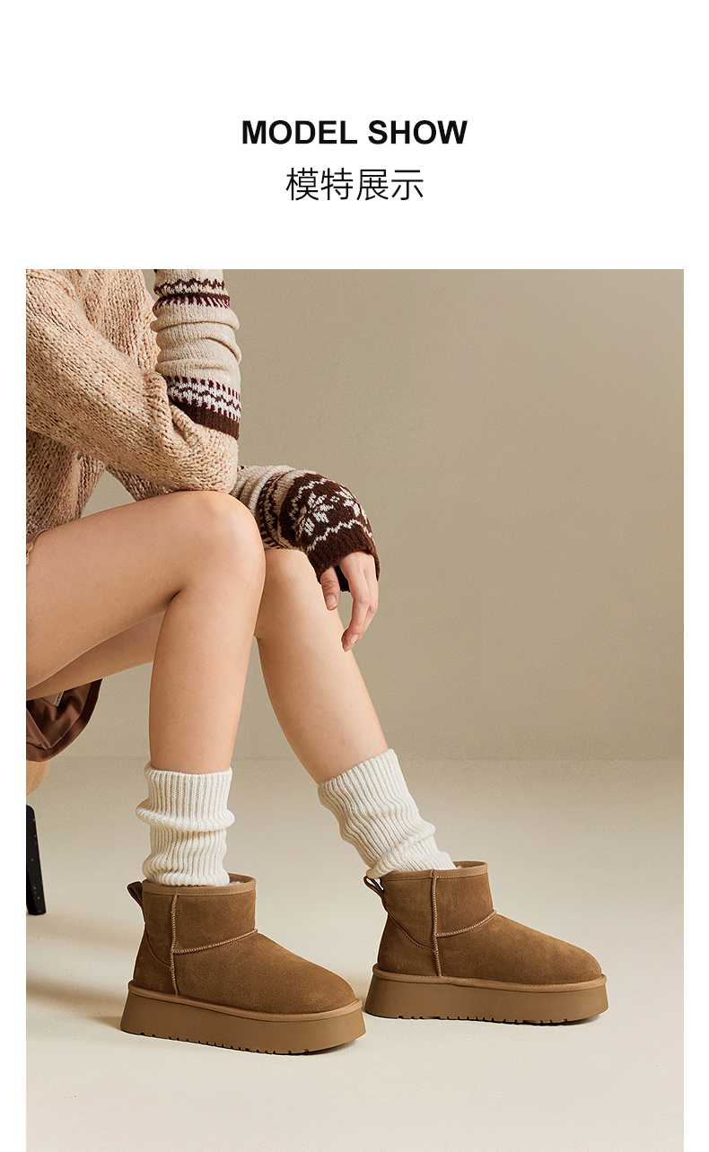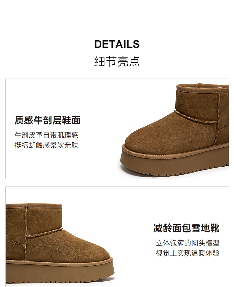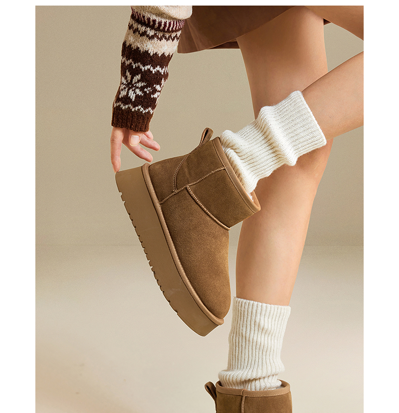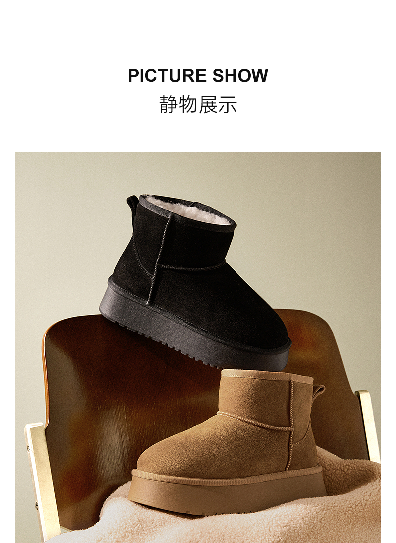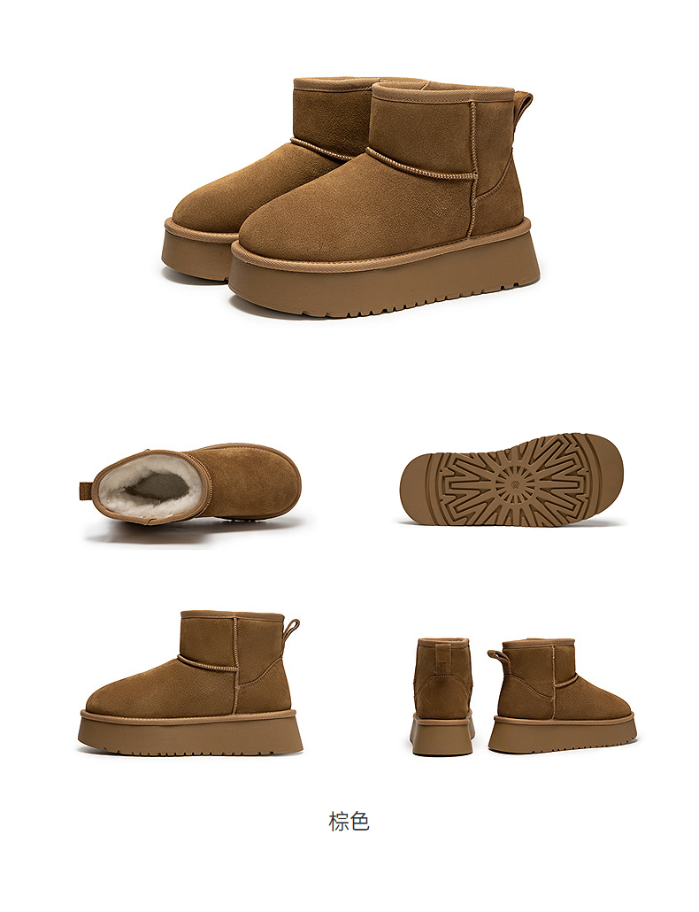 千百度厚底时尚雪地靴女加绒保暖短靴暖暖靴A25703601