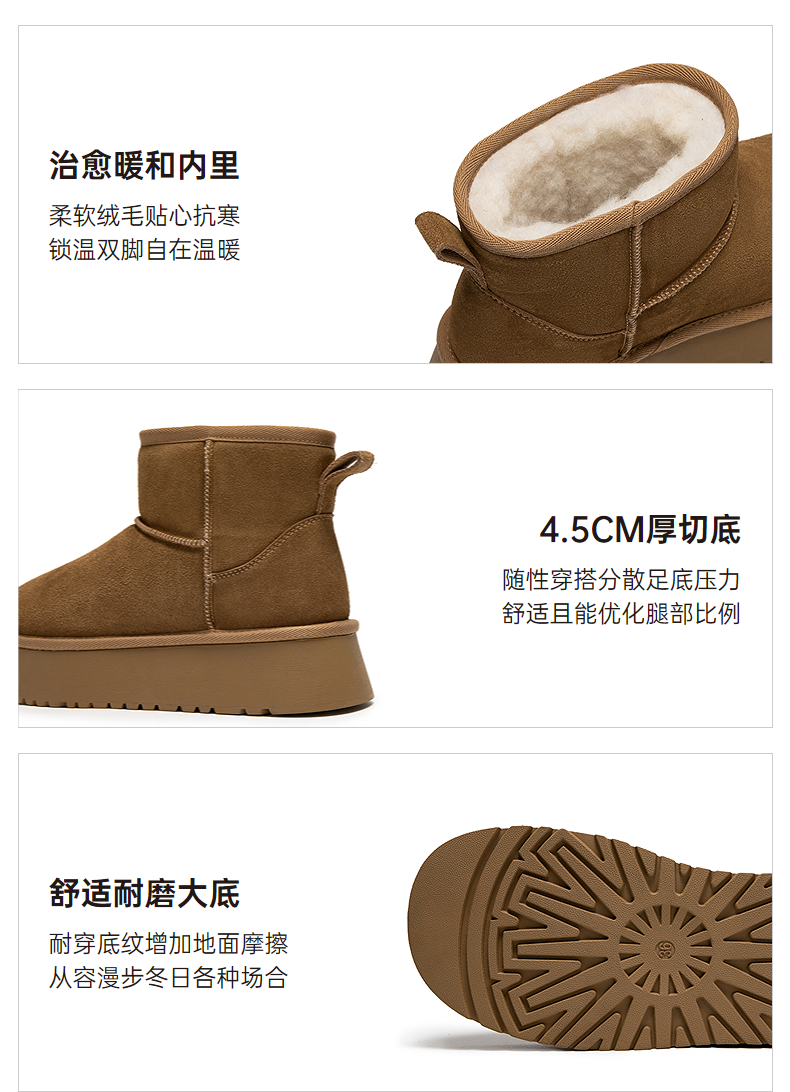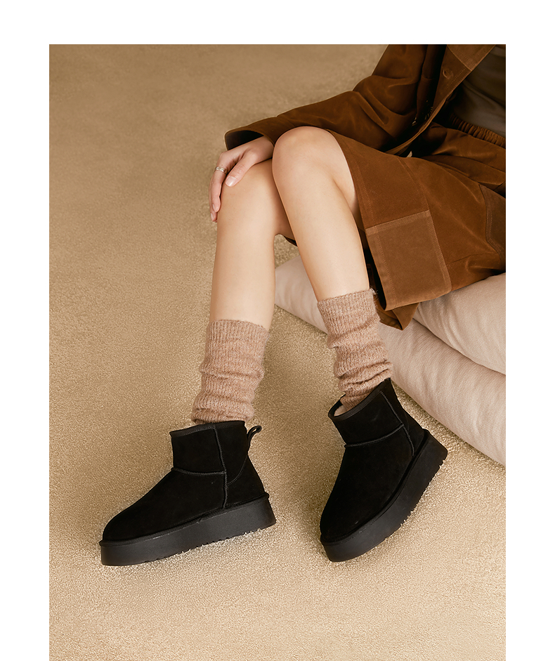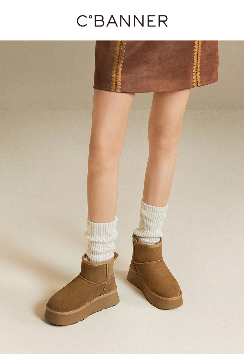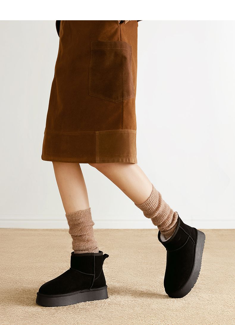 千百度厚底时尚雪地靴女加绒保暖短靴暖暖靴A25703601
