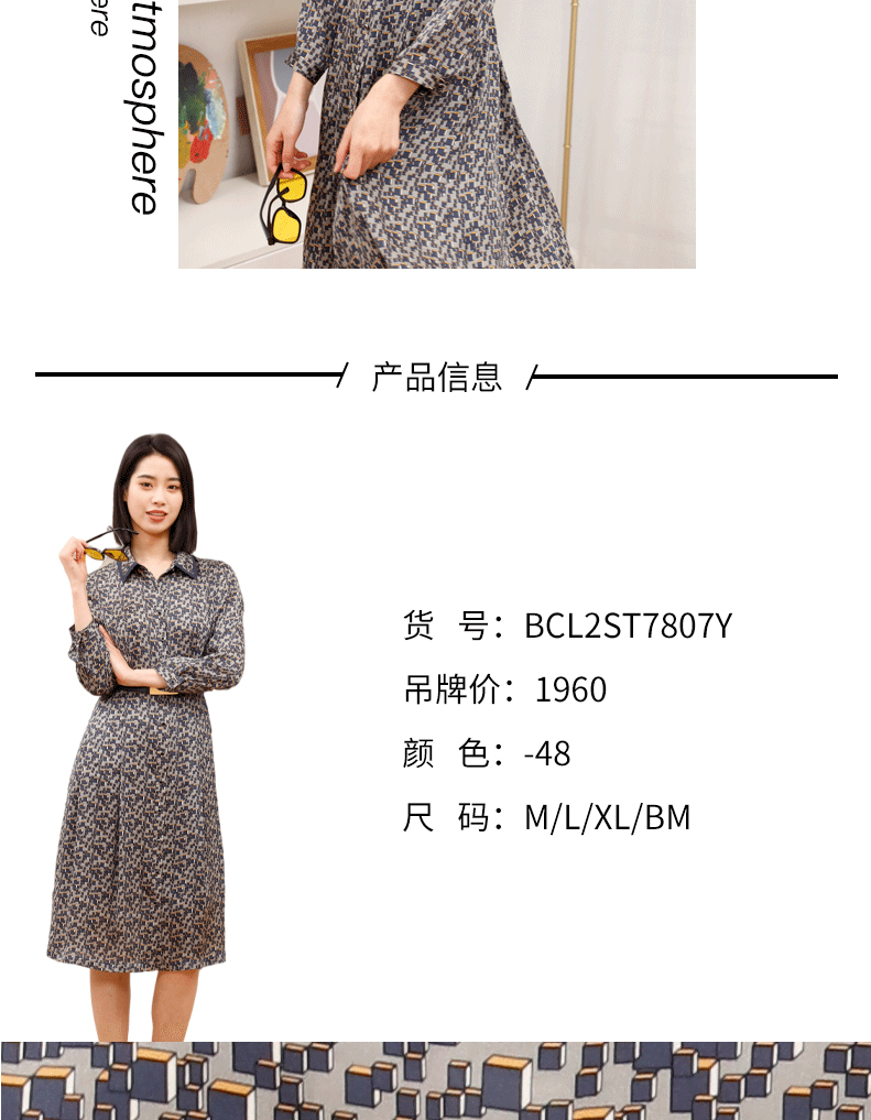 宗洋zongyang女装2022春季新品百搭常规百搭连衣裙BCL2ST7807Y-48