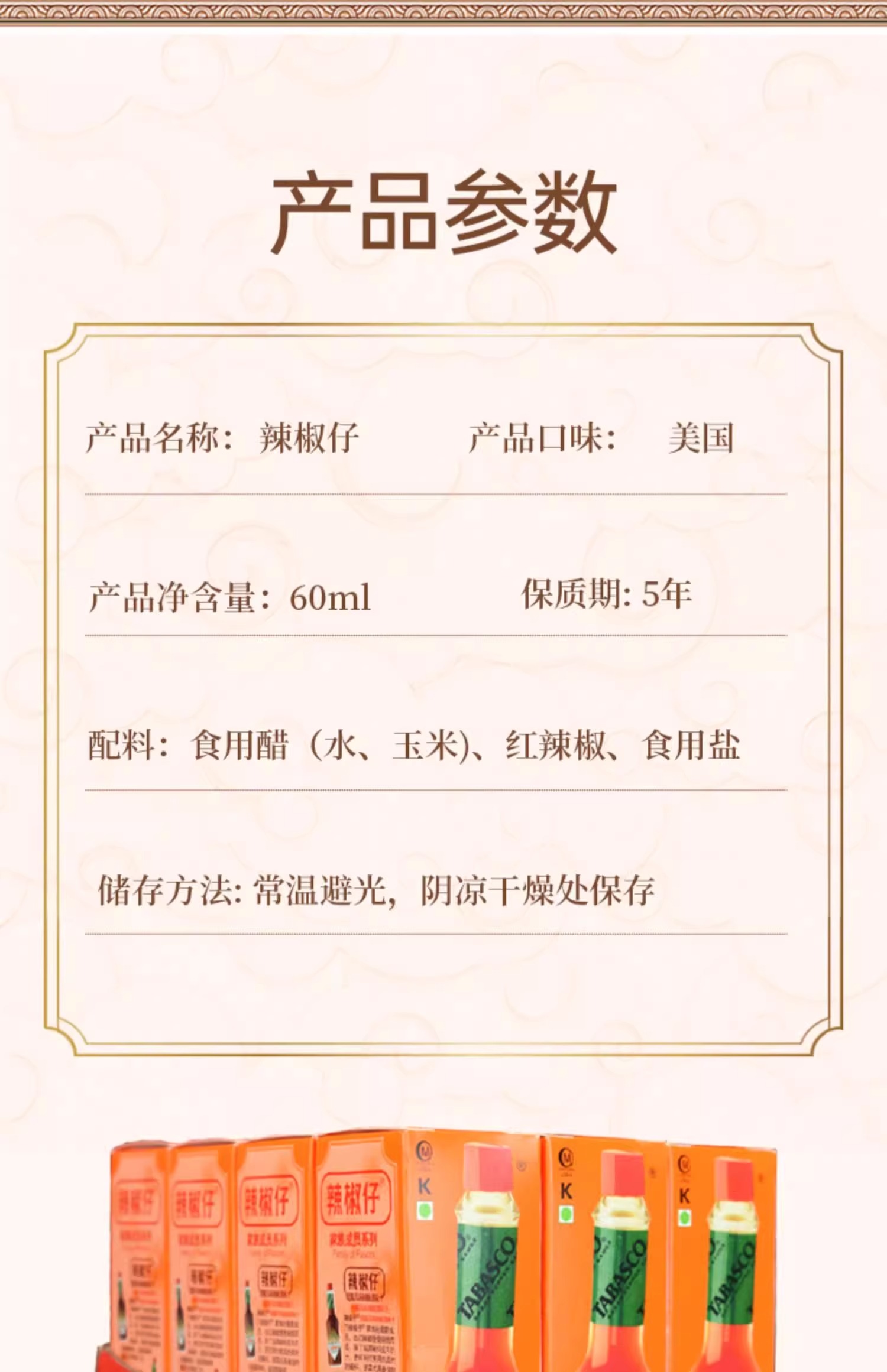 【中欧班列精选】美国进口TABASCO辣椒仔辣椒调味汁60ml/支