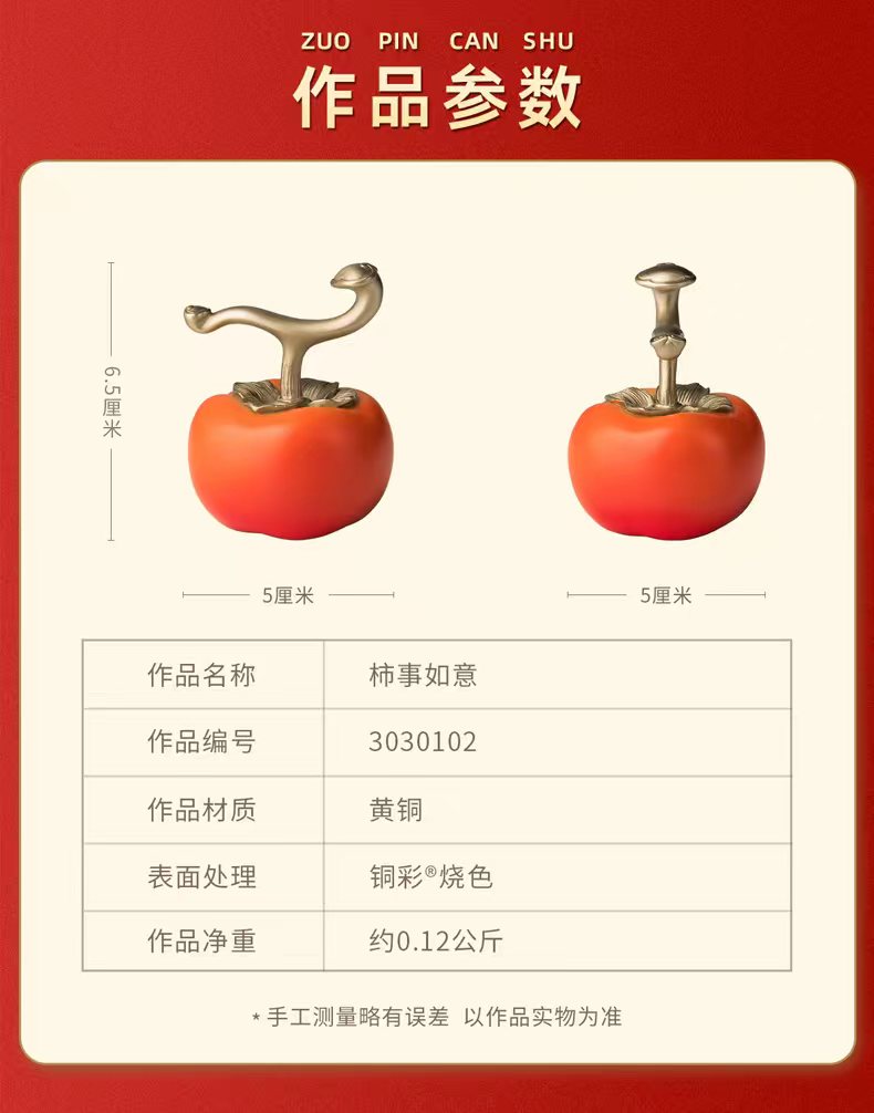 铜师傅《柿事如意》客厅桌面铜柿子摆件 家居装饰工艺品 中秋礼物