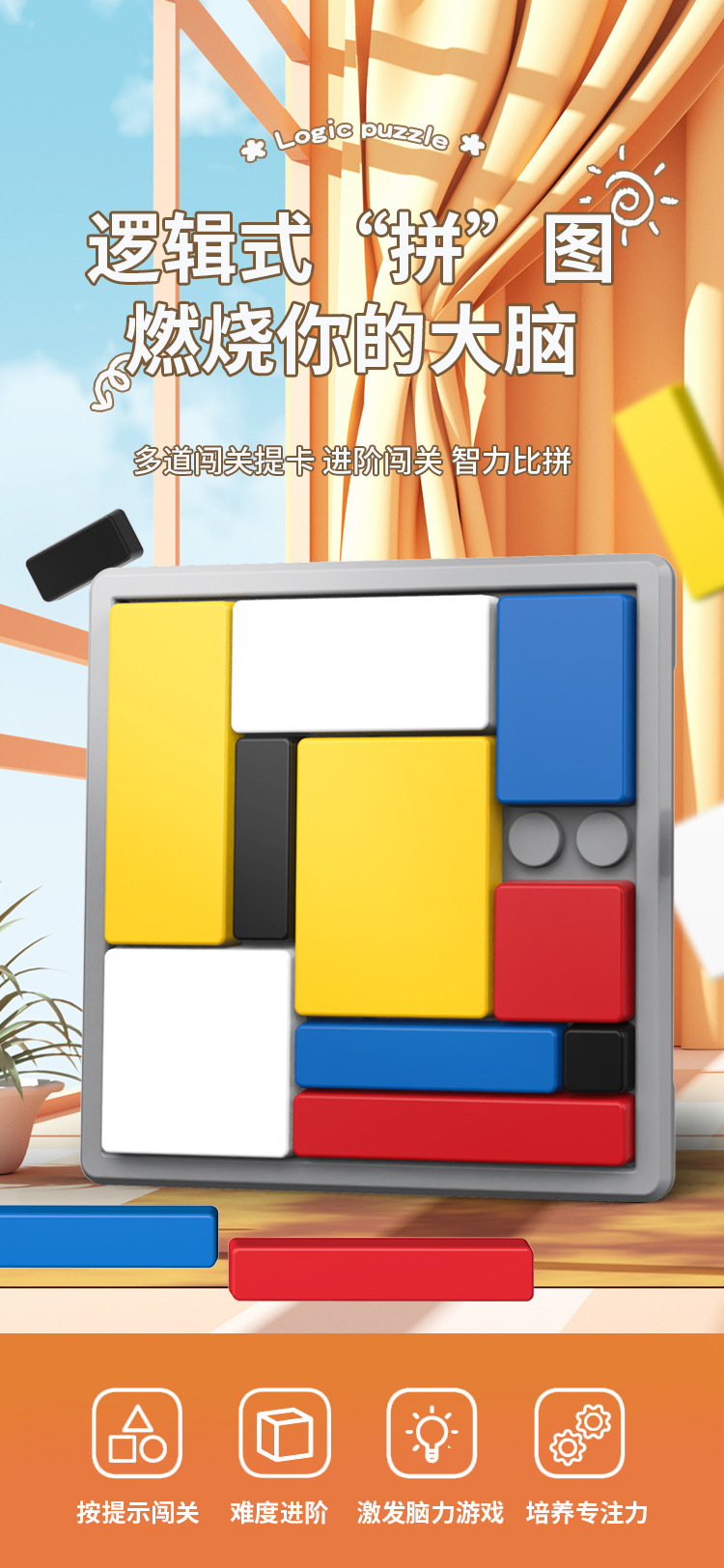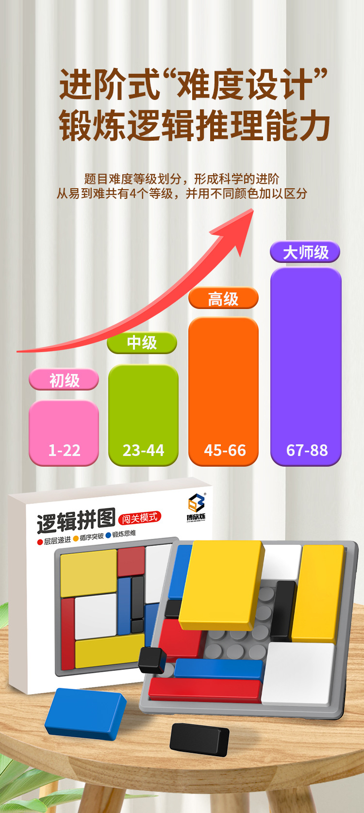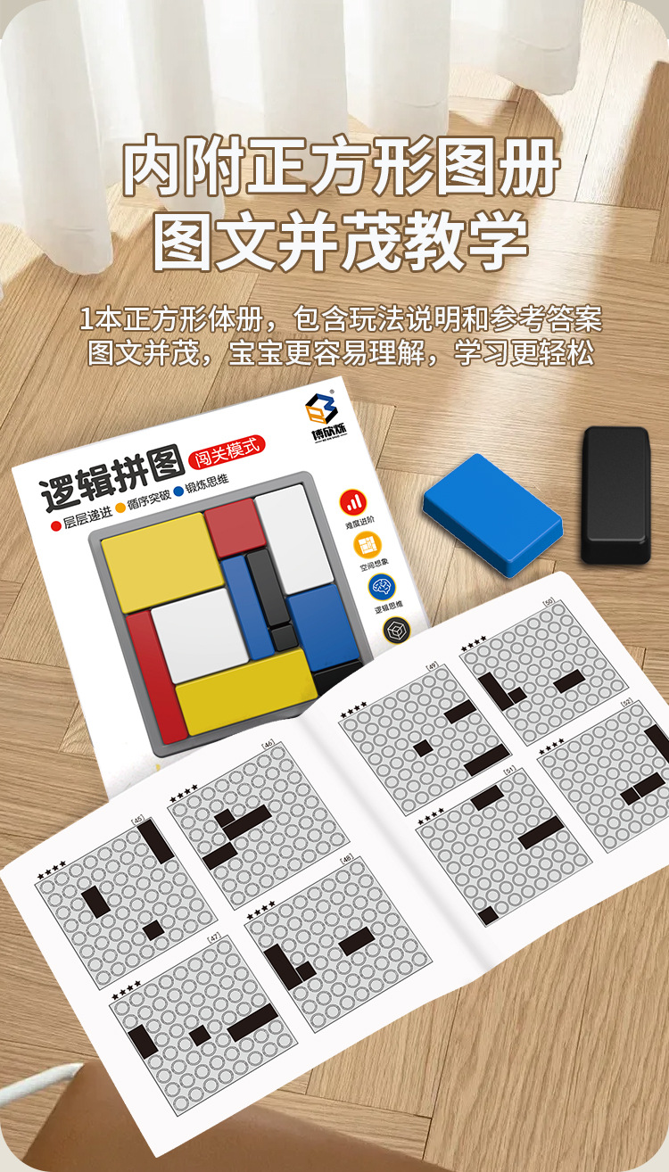 【小小思维家!🧠】88道闯关挑战,逻辑拼图让孩子越玩越聪明!亲子互动必备🎉逻辑拼图逻辑思维训练 积木游戏儿童益智方块 亲子互动智力开发玩具