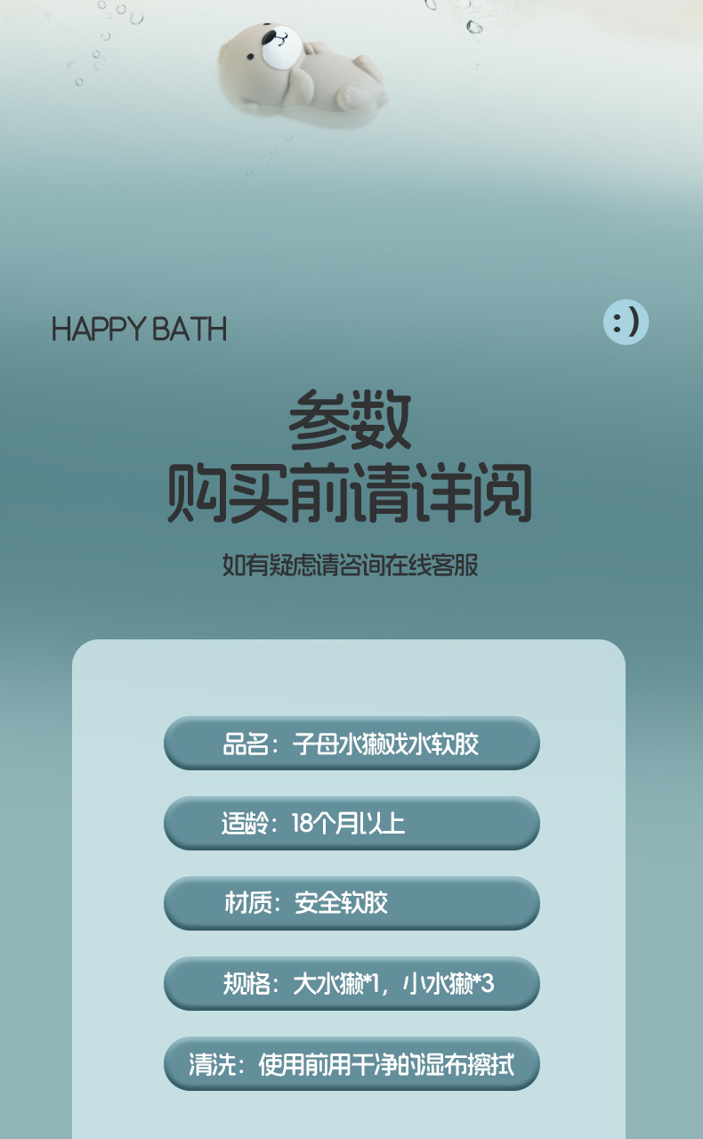 儿童浴室漂浮动物 水獭密封漂浮戏水玩具 婴幼儿沐浴洗澡玩具