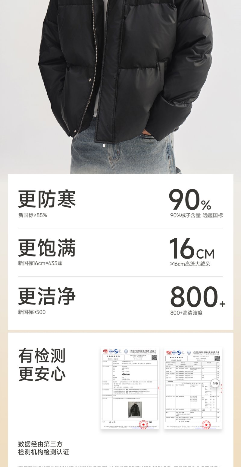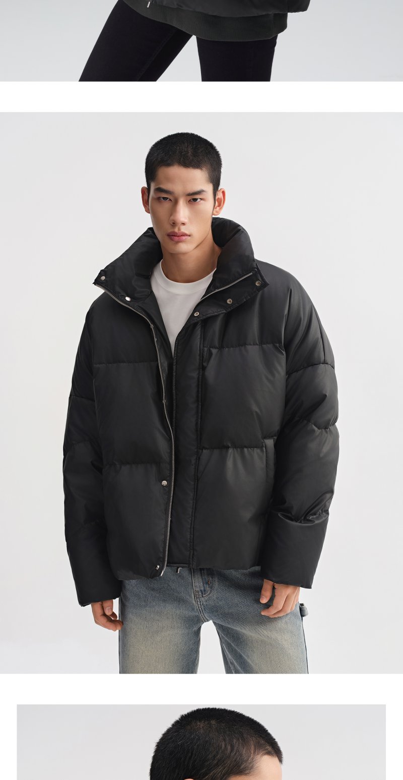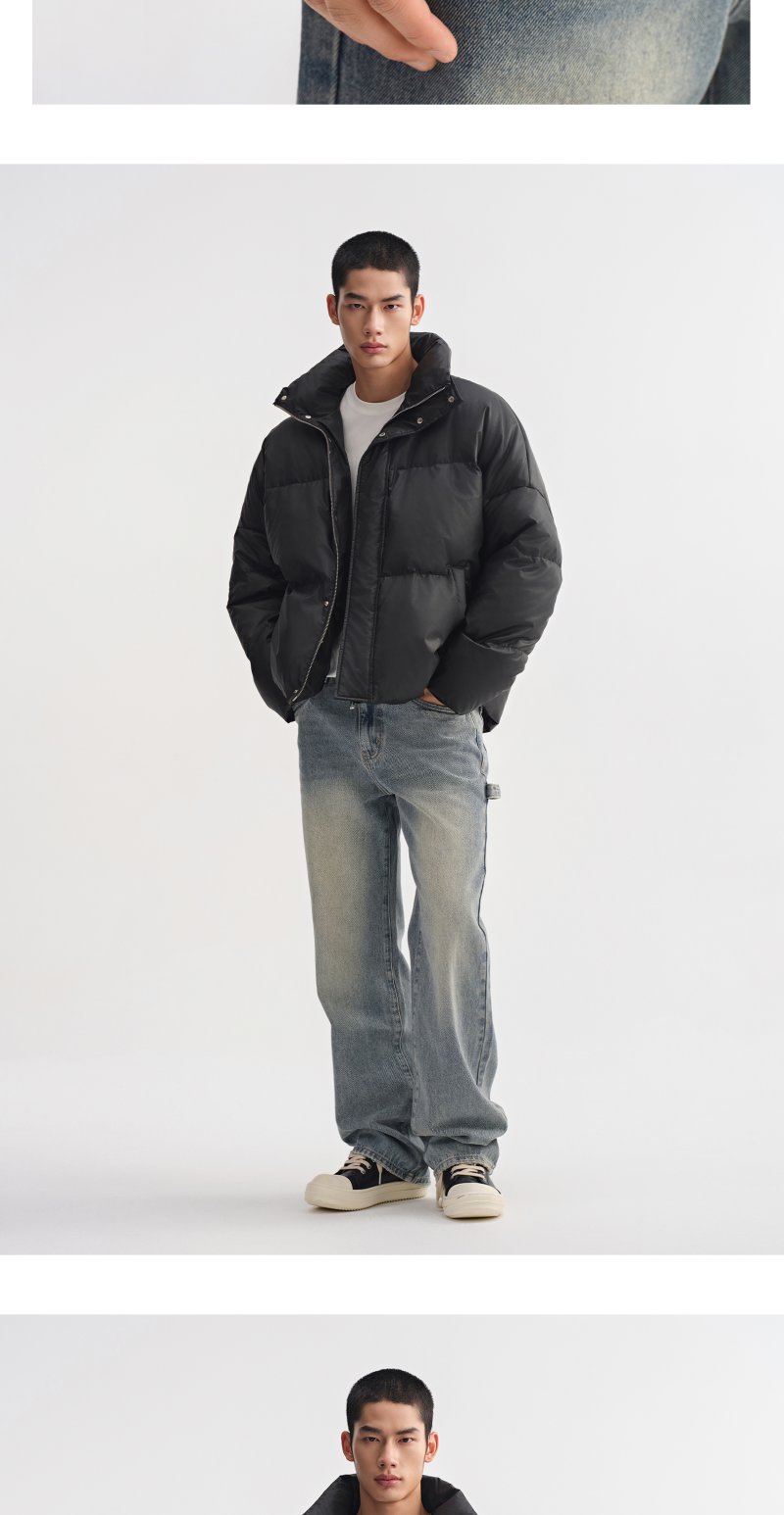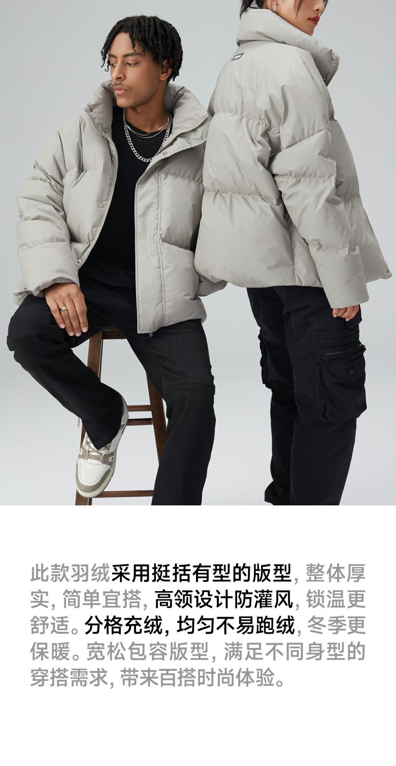 CHINISM赤尘 白鸭绒立领宽松短款羽绒服男冬季男士轻薄黑色外套