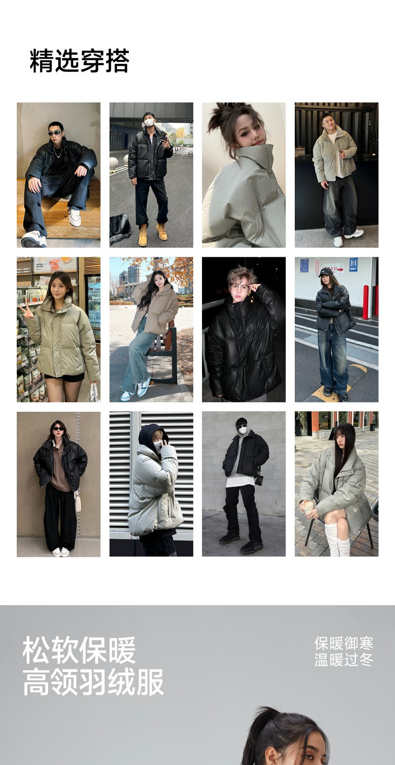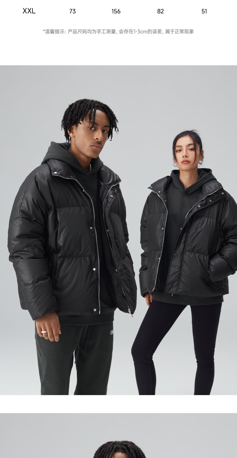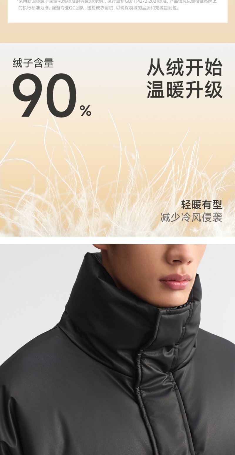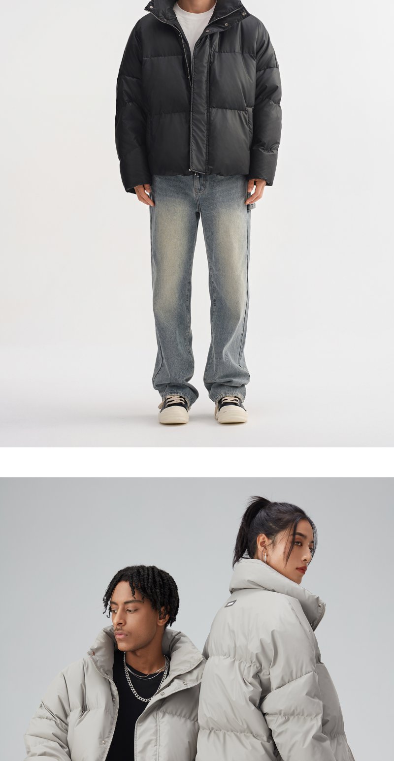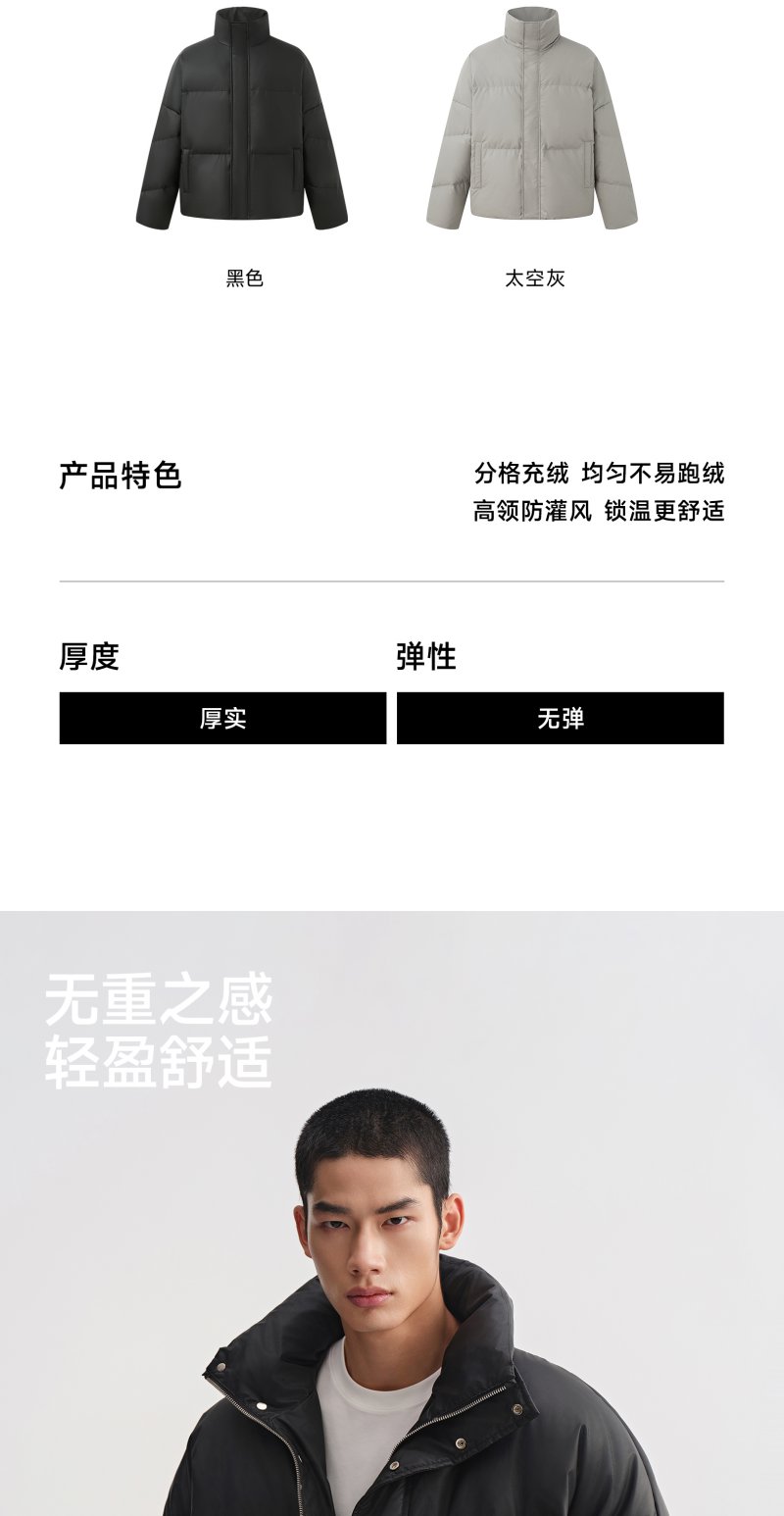 CHINISM赤尘 白鸭绒立领宽松短款羽绒服男冬季男士轻薄黑色外套