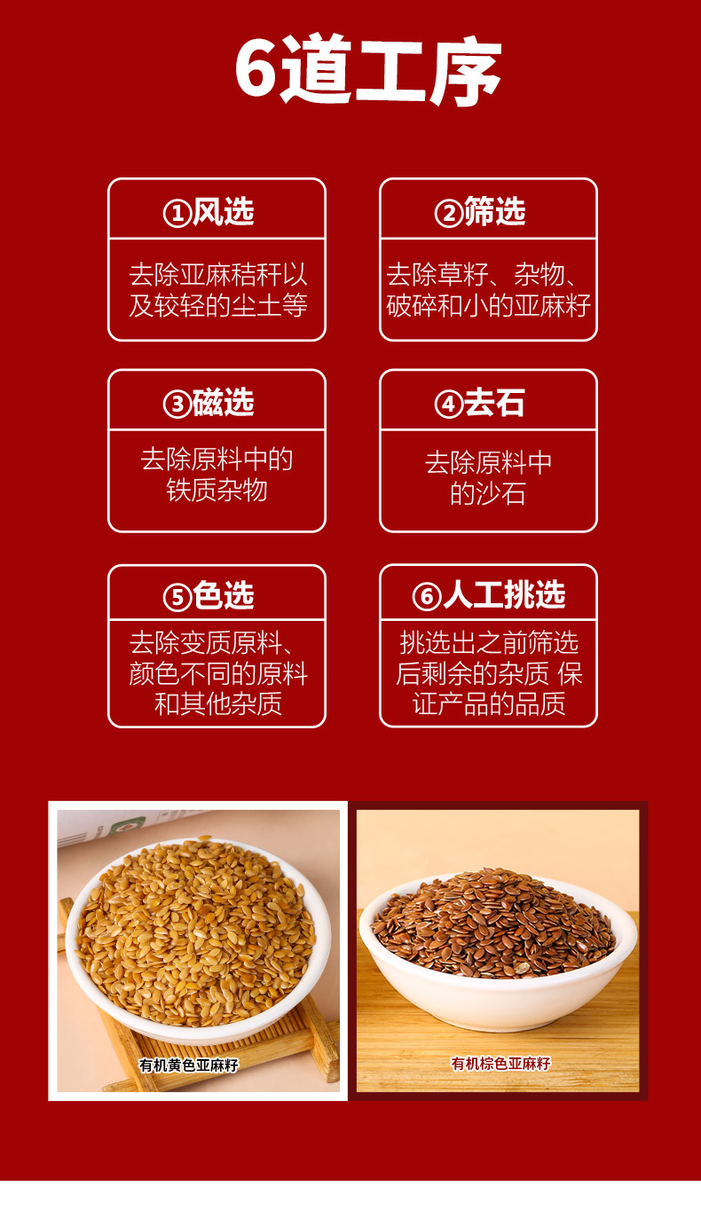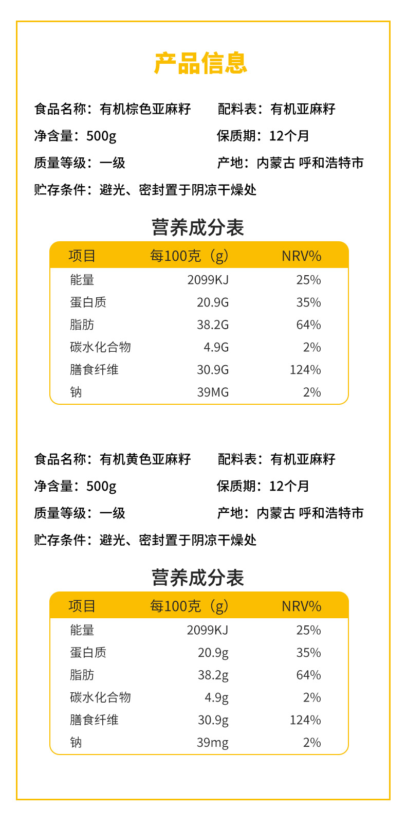 有机棕色色亚麻籽 有机黄色亚麻籽生亚麻籽熟亚麻籽【京东快递送货上门】