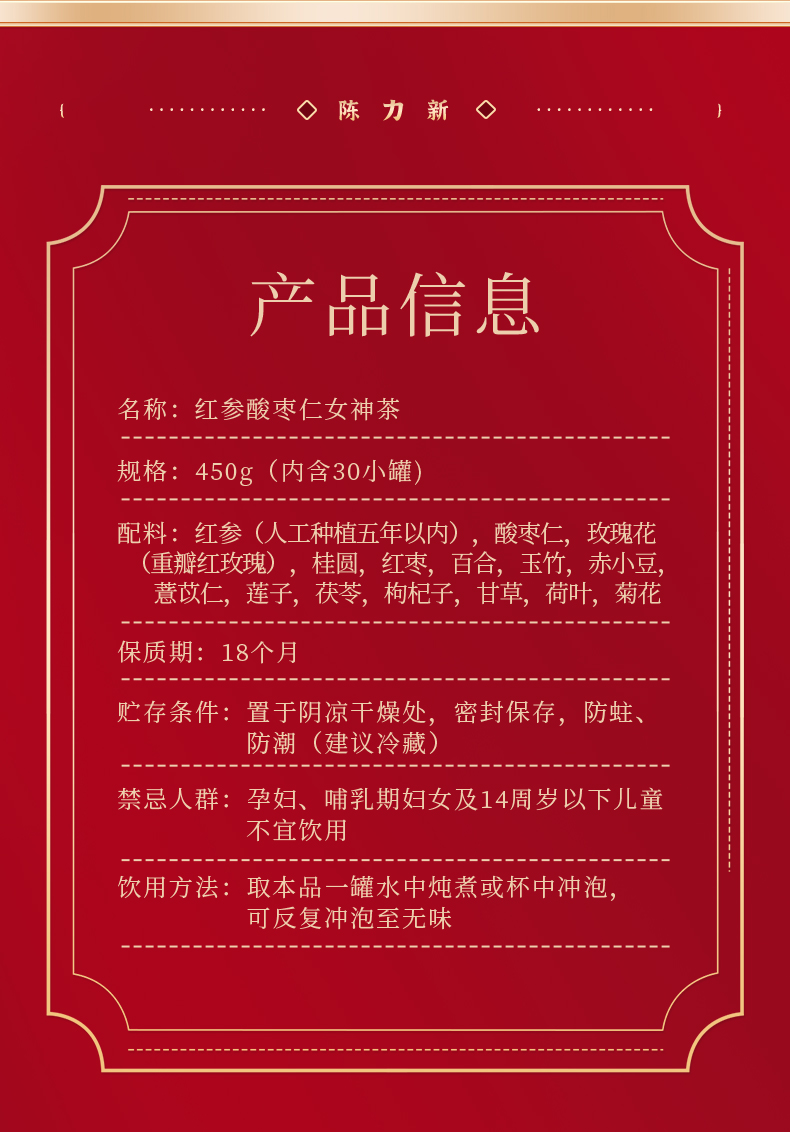 【美颜养生专场 】【专为女性研发】陈力新红参酸枣仁女神茶女生熬夜养生茶玫瑰元气血茶气色茶