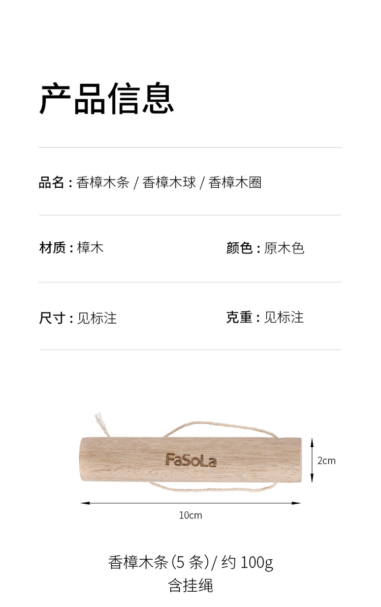 FaSoLa天然香樟木圈樟脑丸衣柜防霉防潮除味防虫防蛀家用