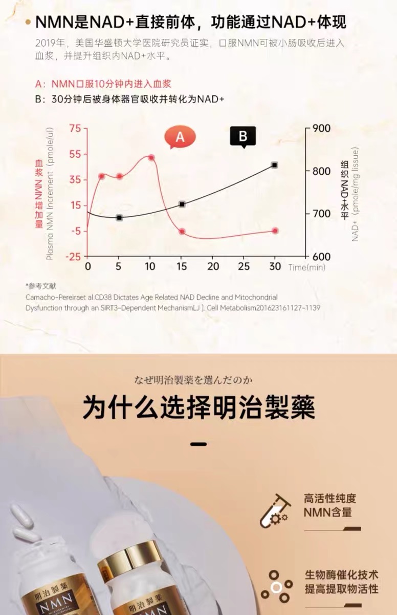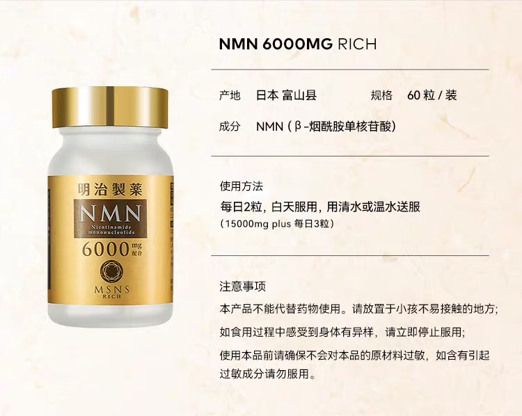 明治制药 β-烟酰胺单核苷酸6000mg·胶囊60粒【香港直邮】