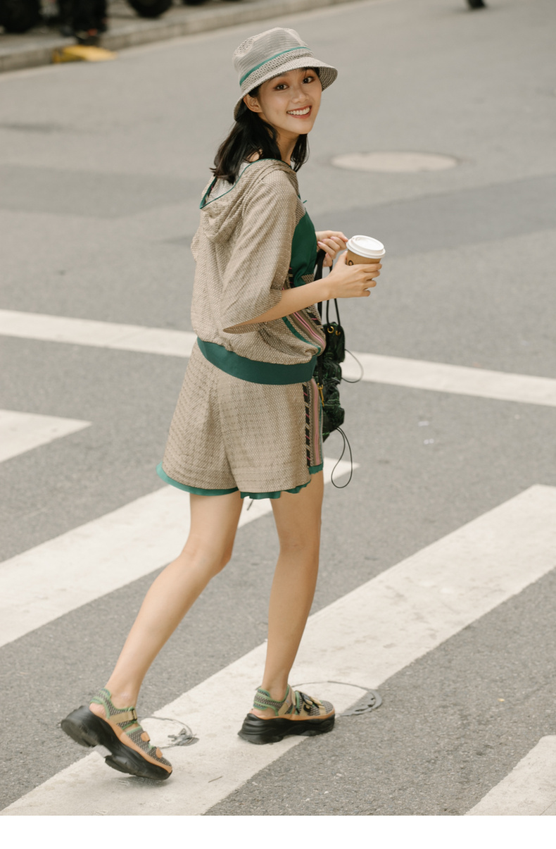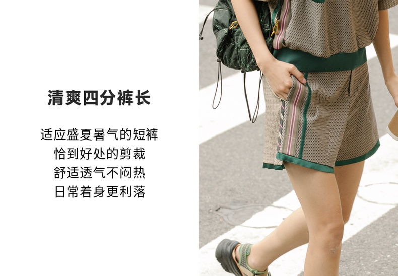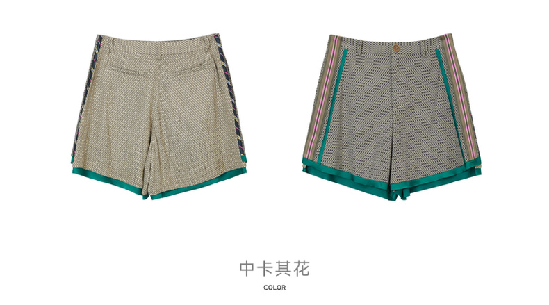 谜底短裤女2022夏季新款复古文艺撞色拼接A型休闲裤225MK6040