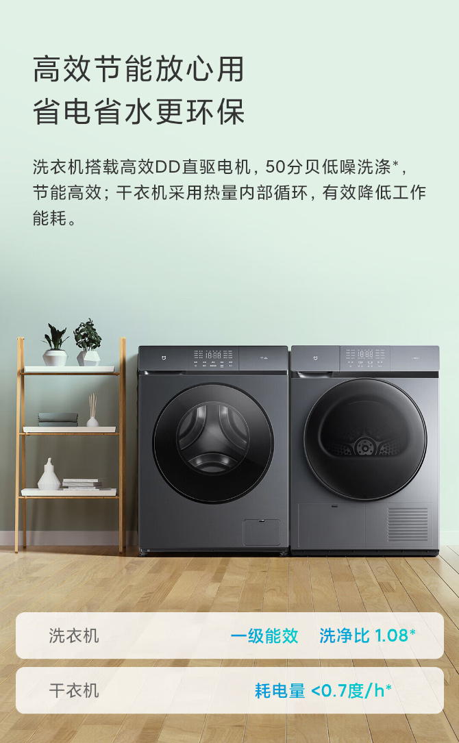 【小米】米家洗烘套装 10kg+10kg 热泵烘干机加滚筒洗衣机