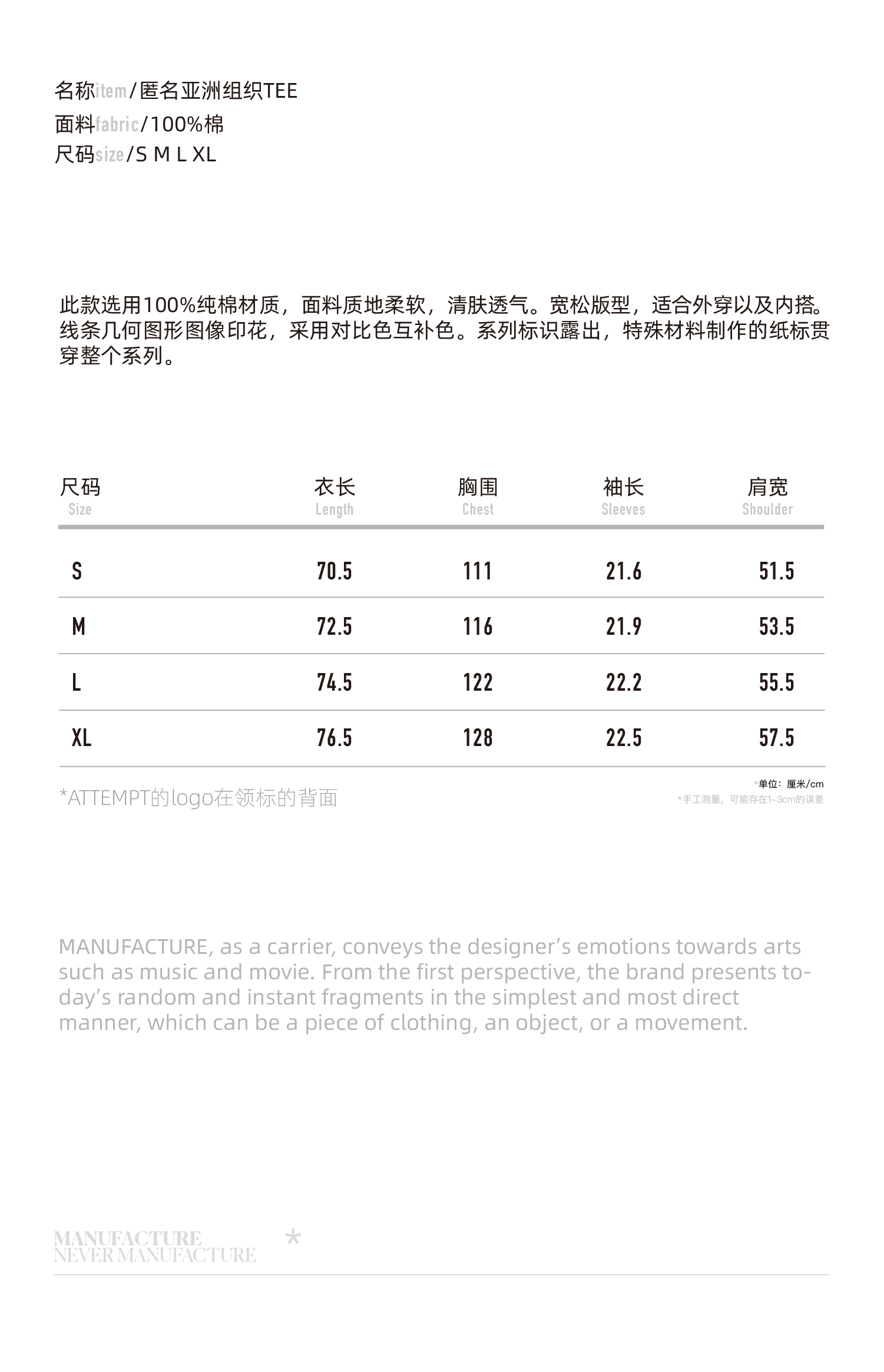 MANUFACTURE BY ATTEMPT 匿名亚洲组织短袖T恤