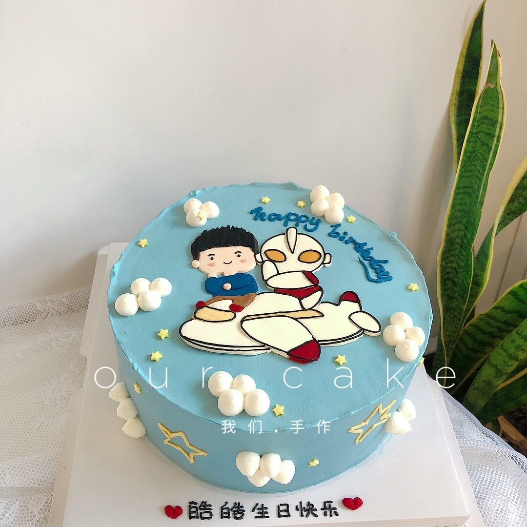 小男孩奥特曼坐飞机手绘蛋糕(两个款)-低糖处理无添加