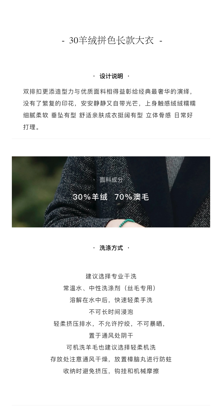 火桐hooton 30羊绒高定系列 拼色长款山羊绒大衣3419