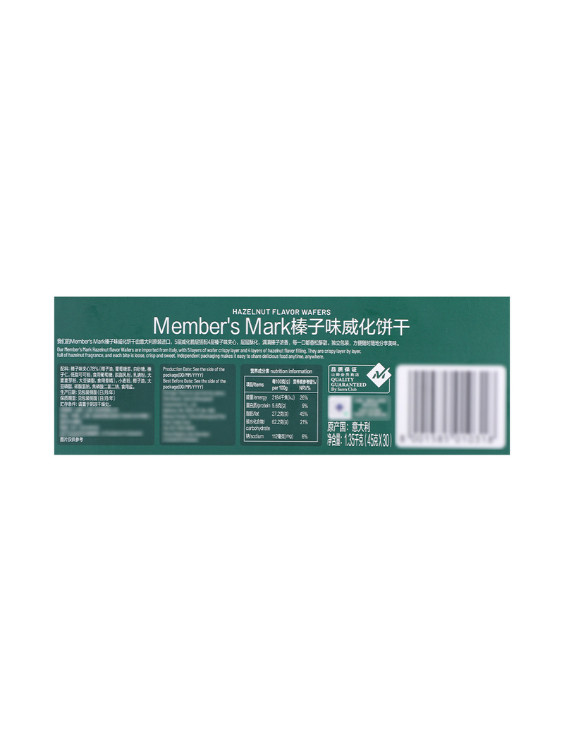 Member's Mark榛子味威化饼干1.35kg(45g*30) 山姆会员店商品非商品原因不支持退款