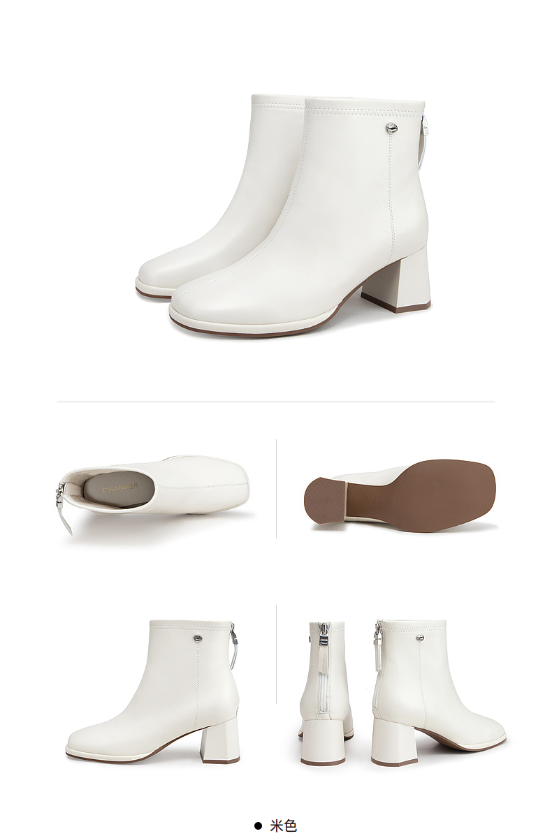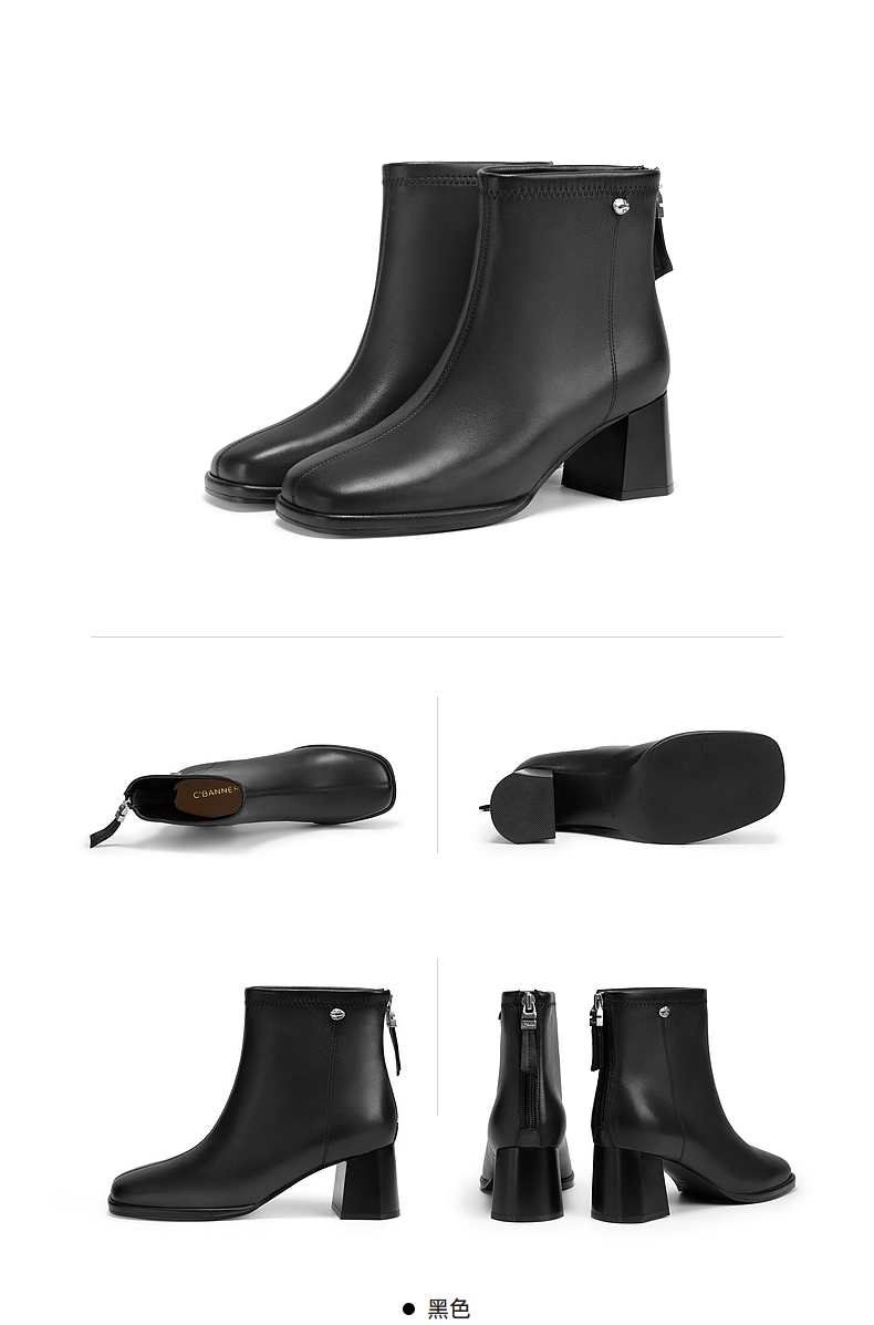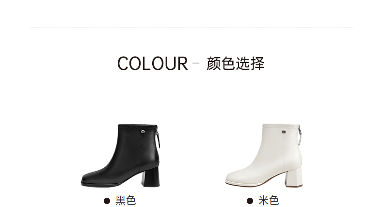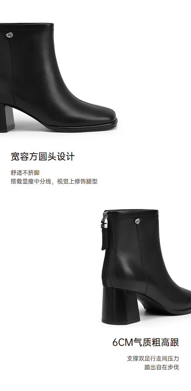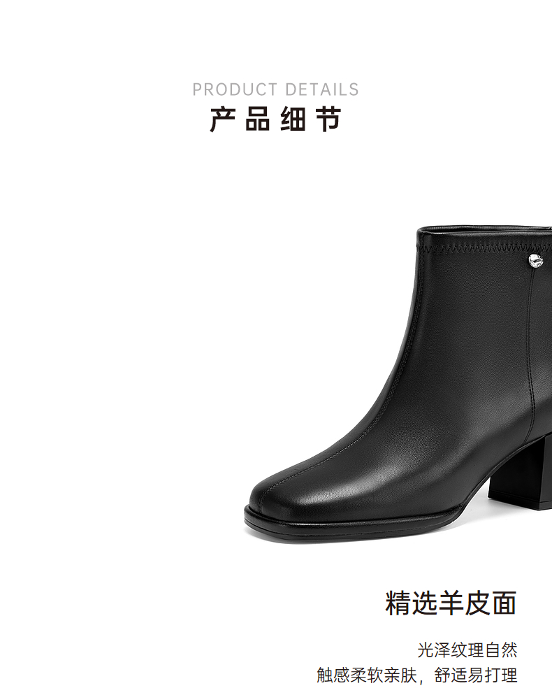 千百度羊皮粗高跟时装靴女冬季通勤方跟洋气小短靴子显瘦A24525311