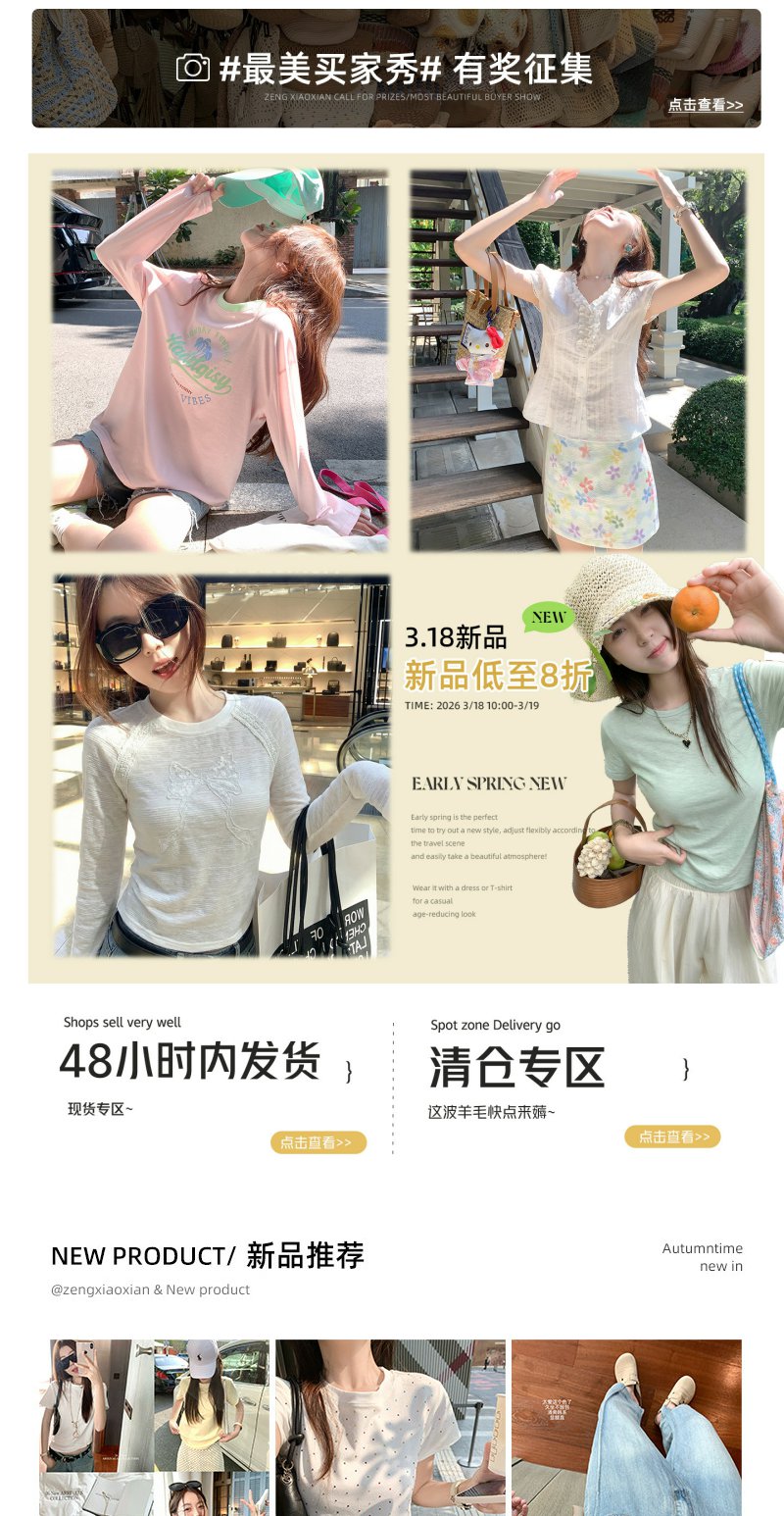 <曾小咸推荐>4.5现货秒杀 !微信超特价!韩系纯色正肩短袖t 日常119.99 立减60 秒杀59.99!!