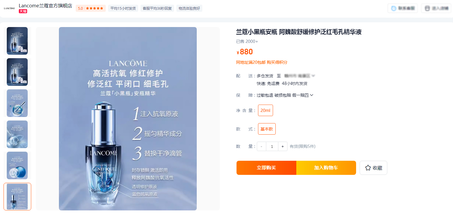 【7.13王炸割肉价】兰蔻小黑瓶安瓶精华4ml *5(24年9月)/20ml(限24年10月)