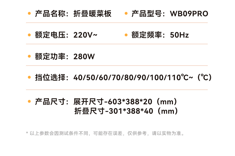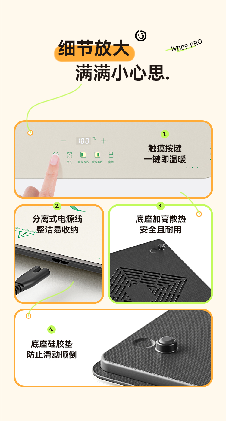 大宇2025新款折叠暖菜板饭菜保温板WB09PRO