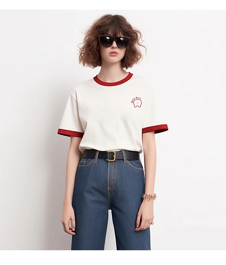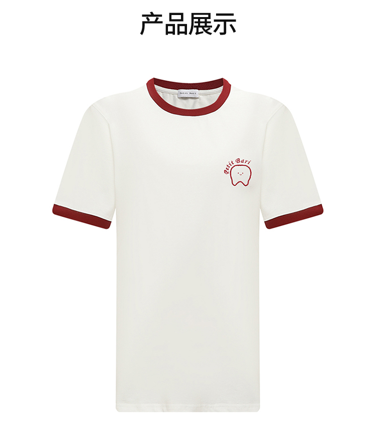 【2件9折】【Petit Bari】牙齿刺绣复古休闲短T 潮流热销 网球穿搭