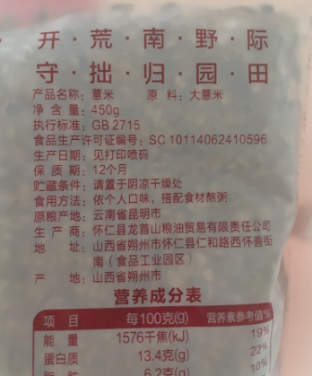 【晋之坊】大薏米450g精选优质薏米颗粒饱满