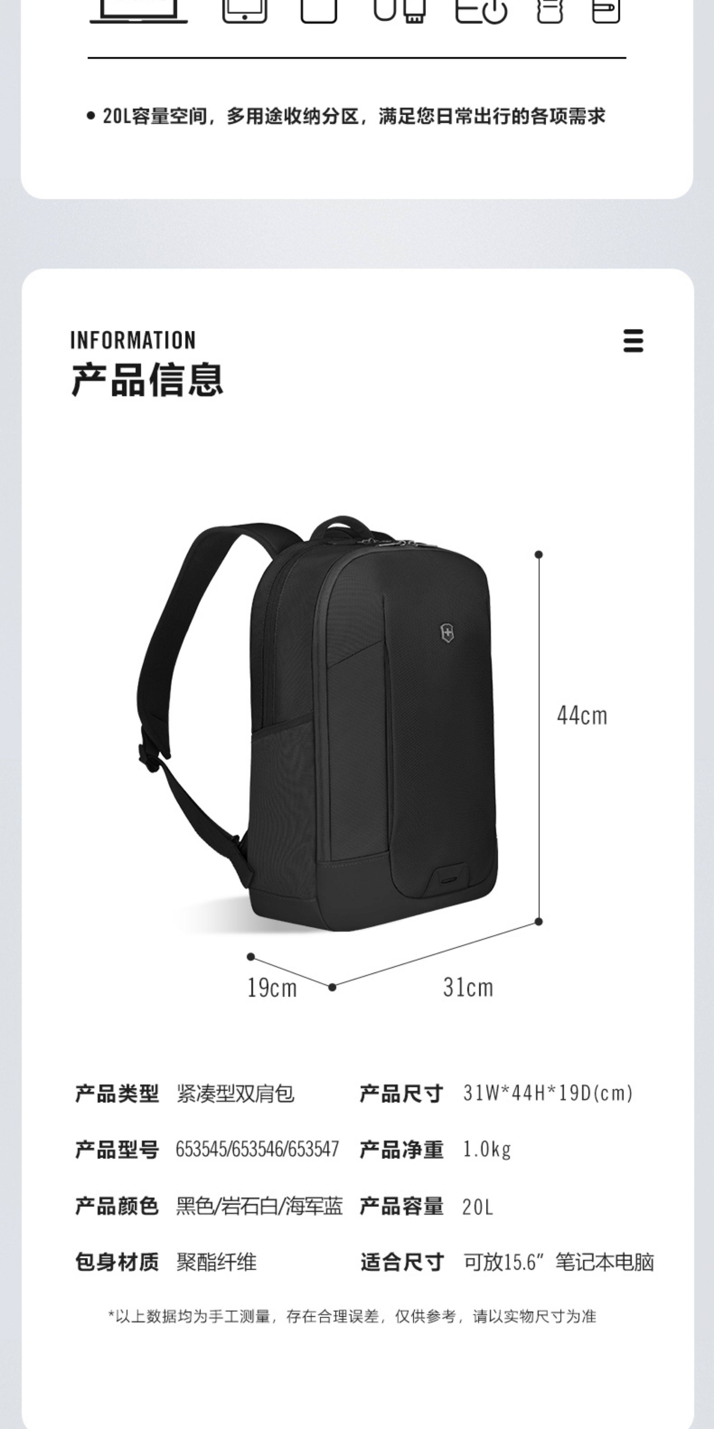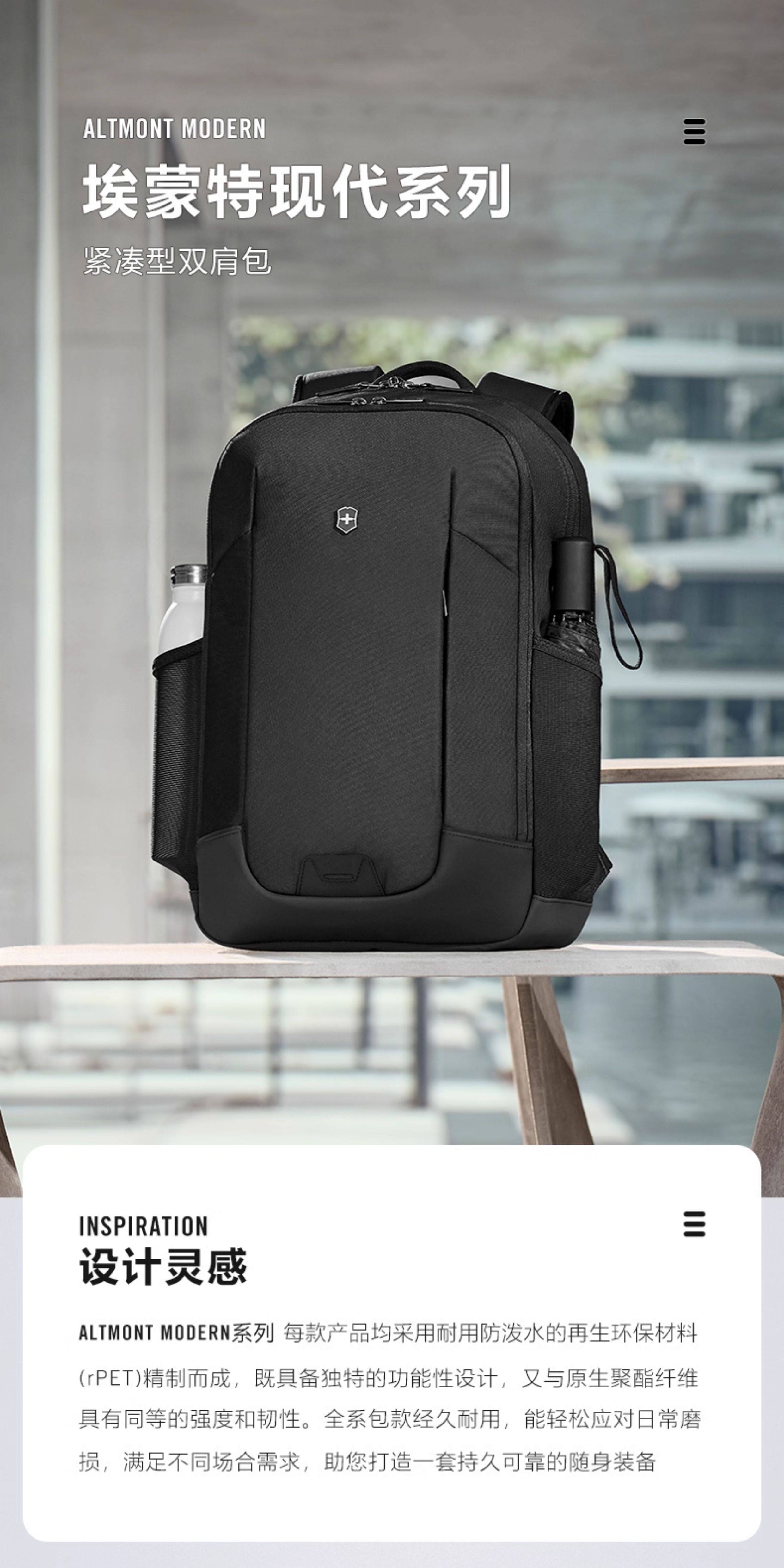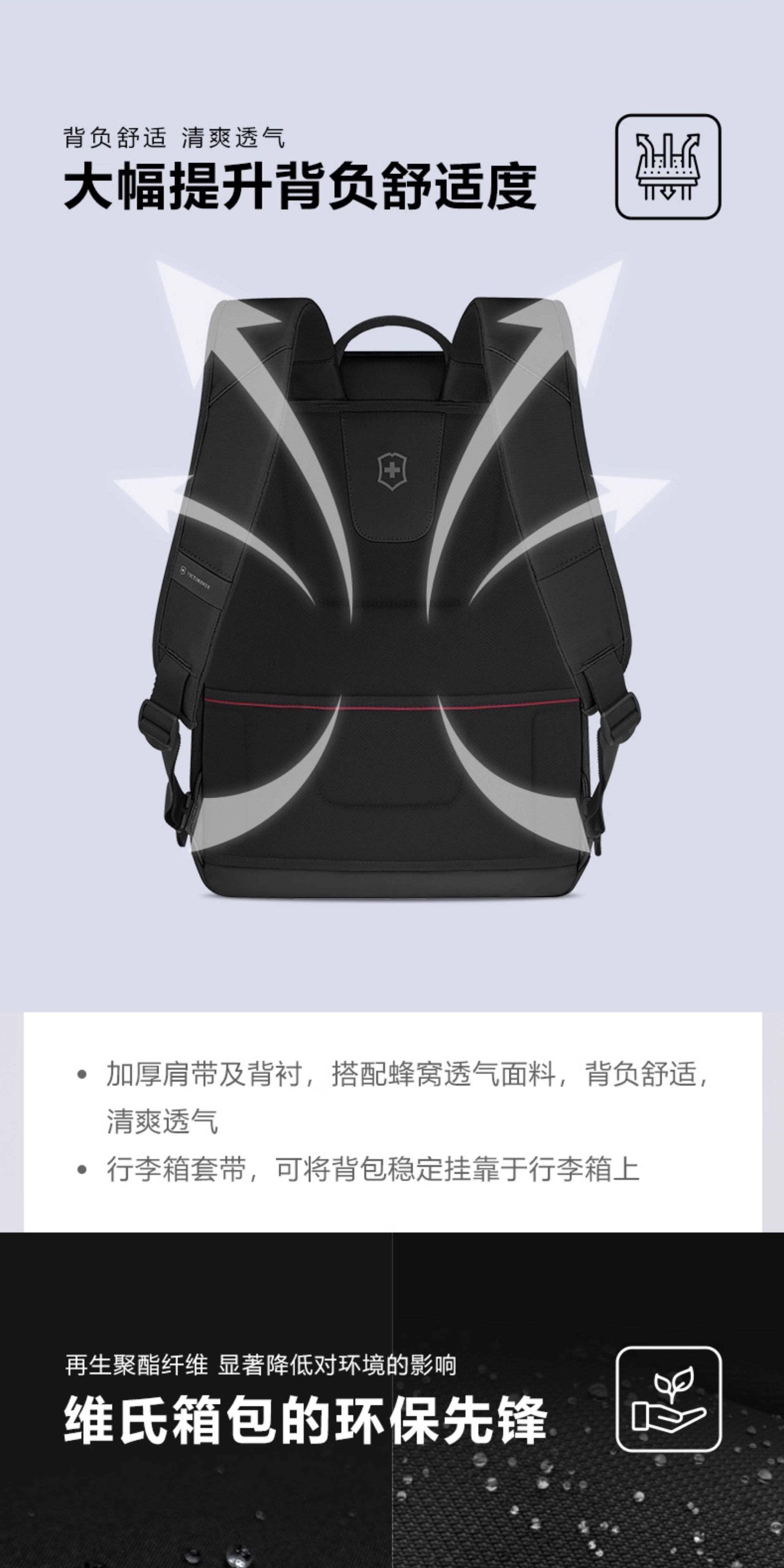維氏軍刀 埃蒙特现代系列紧凑型双肩包 (附独立笔记本保护套),黑色 653545