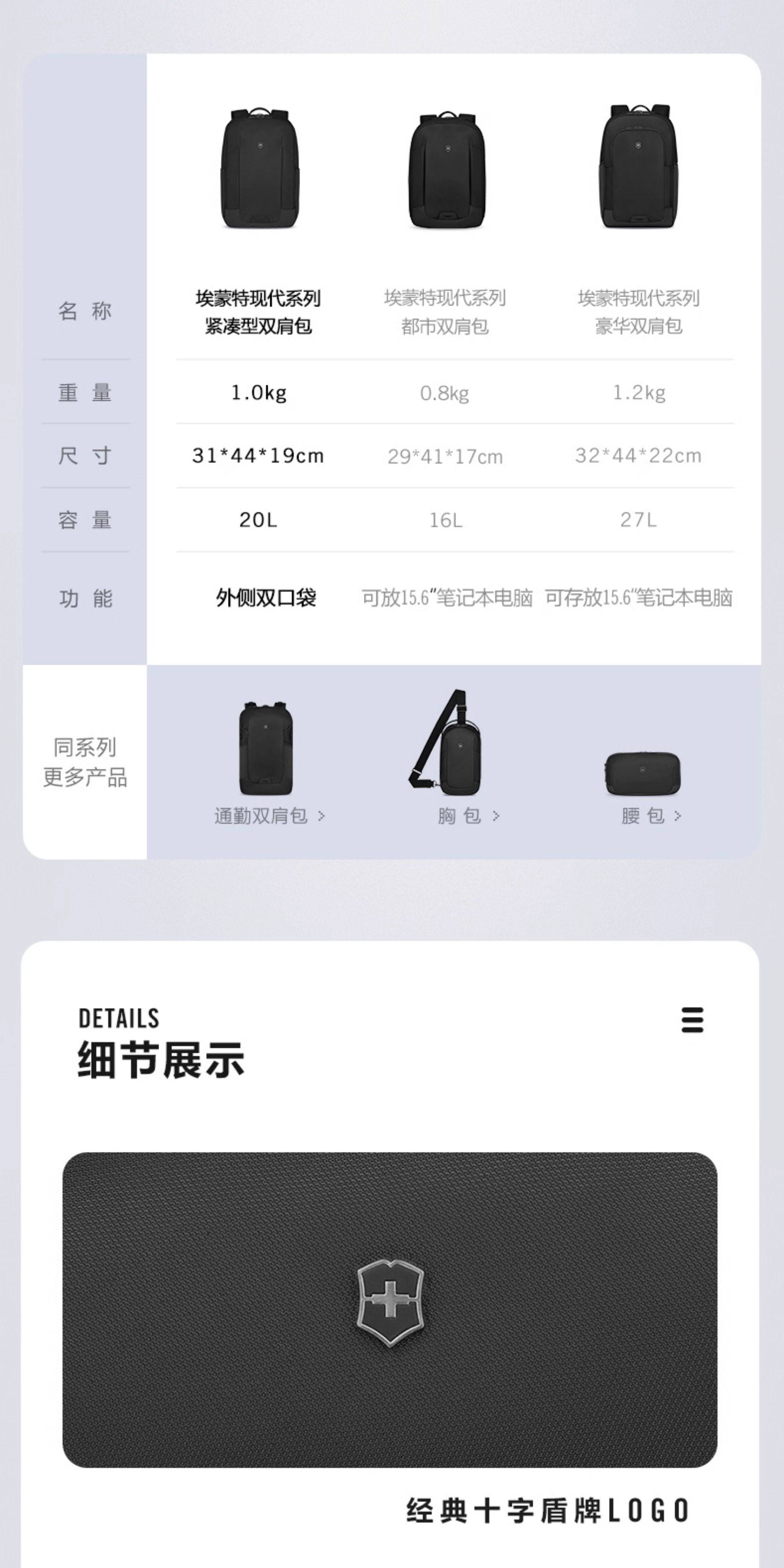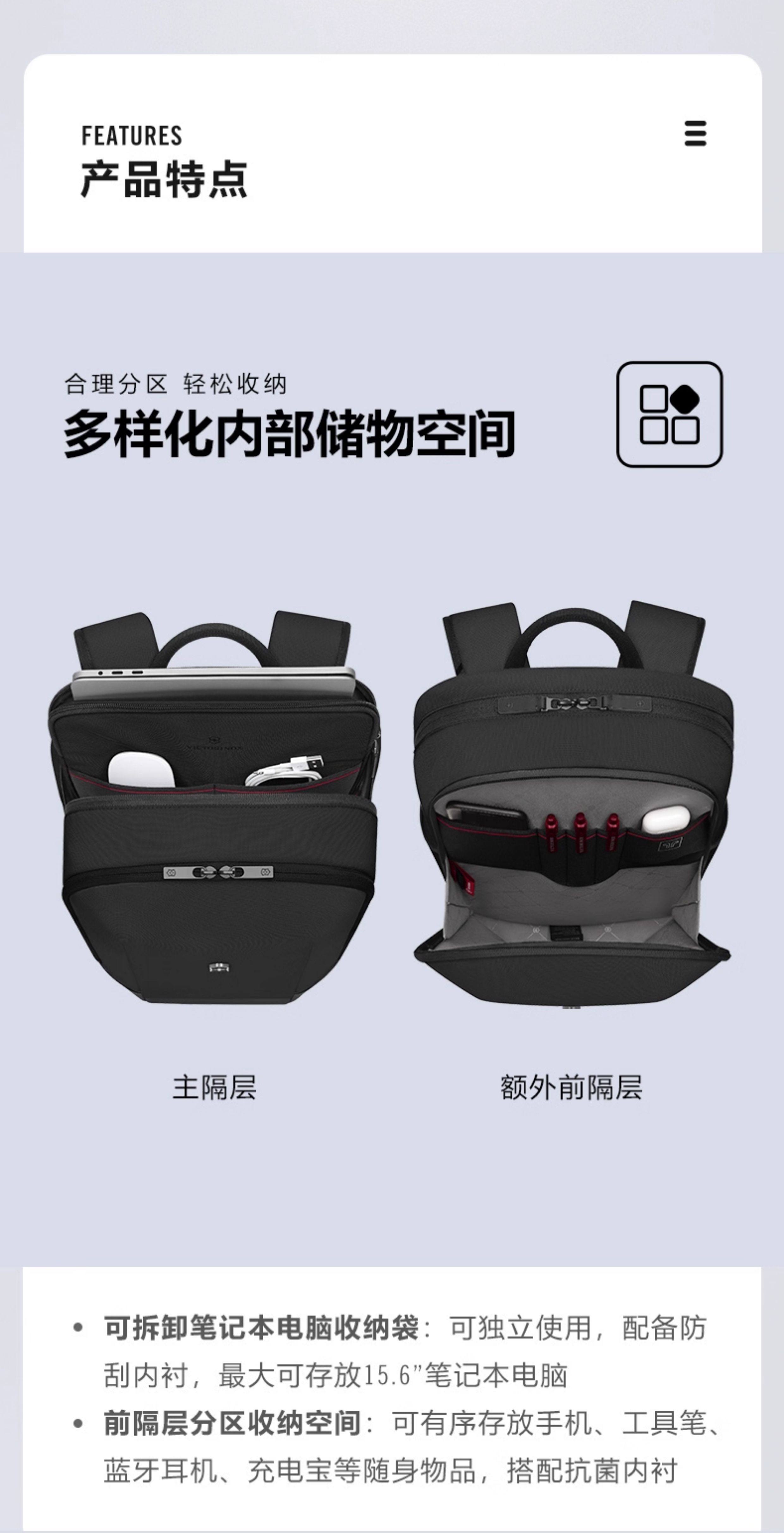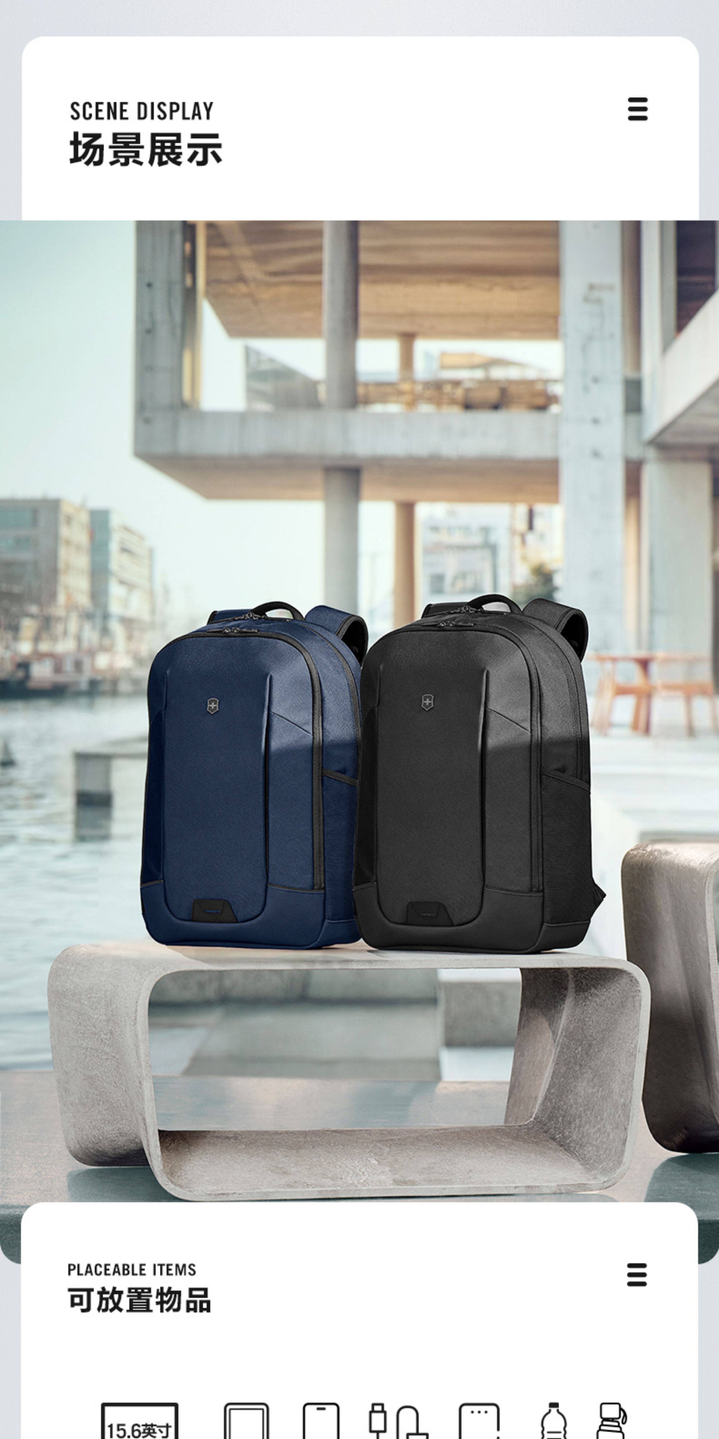 維氏軍刀 埃蒙特现代系列紧凑型双肩包 (附独立笔记本保护套),黑色 653545