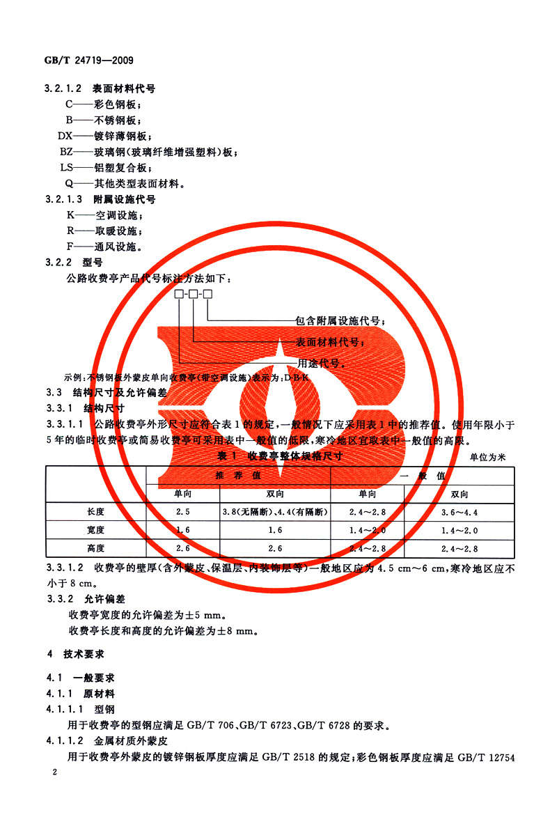 书名:速印不退 B/T 24719-2009 公路收费亭