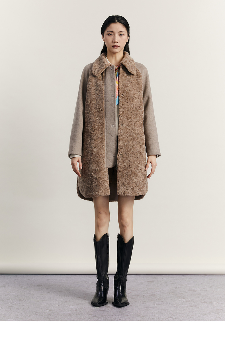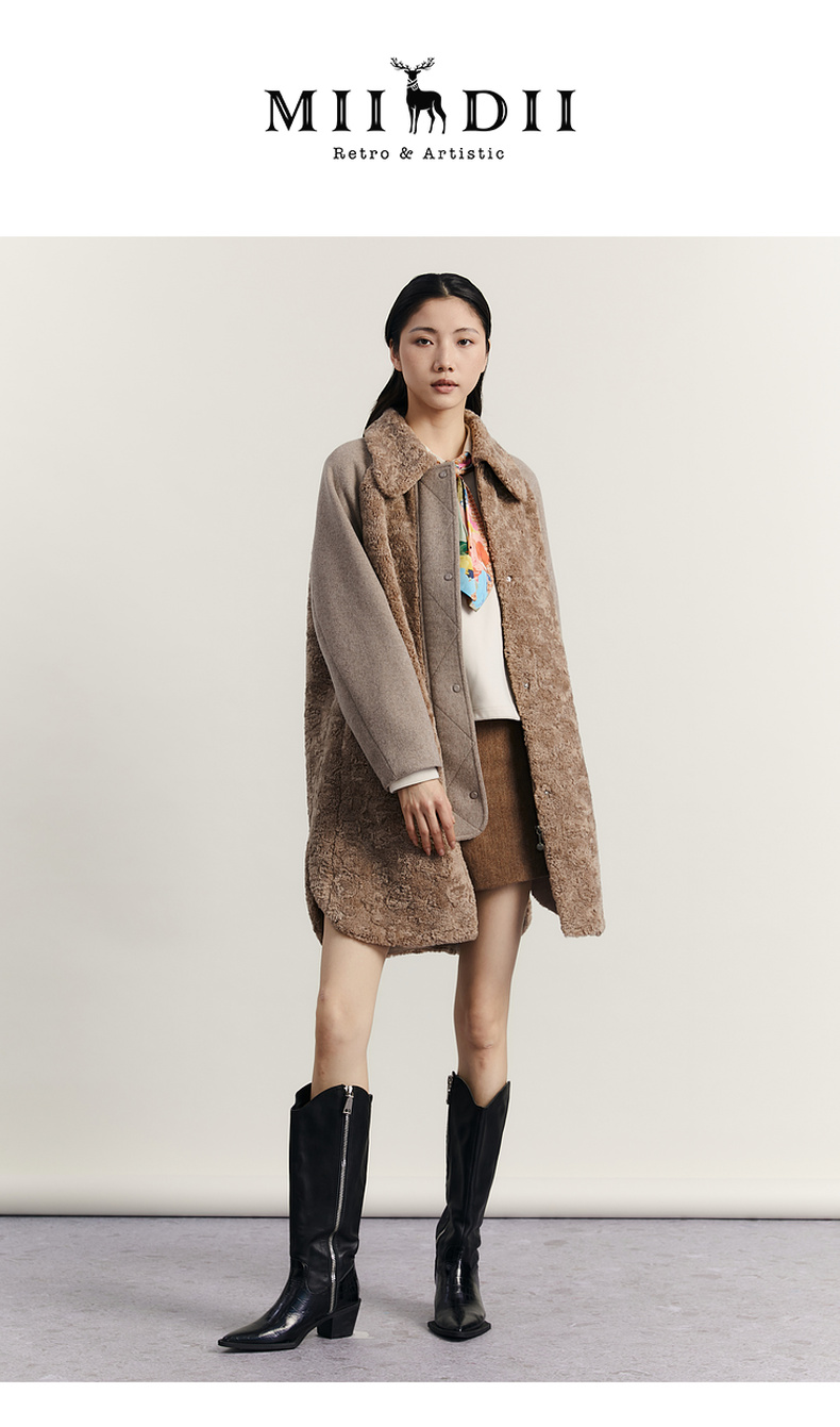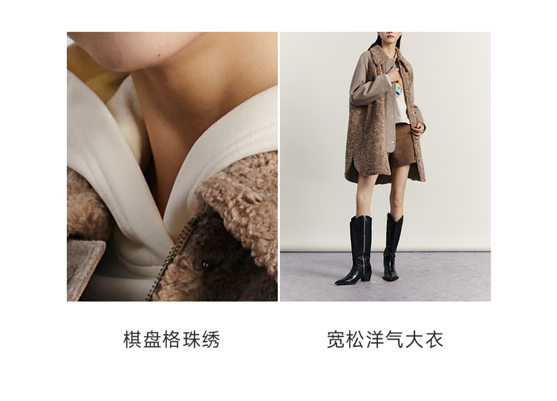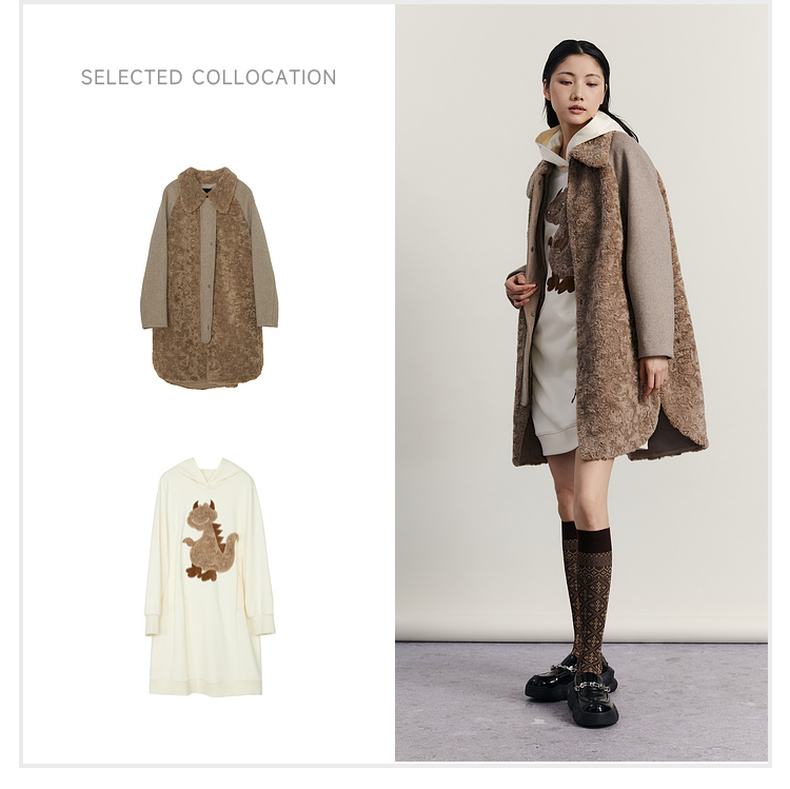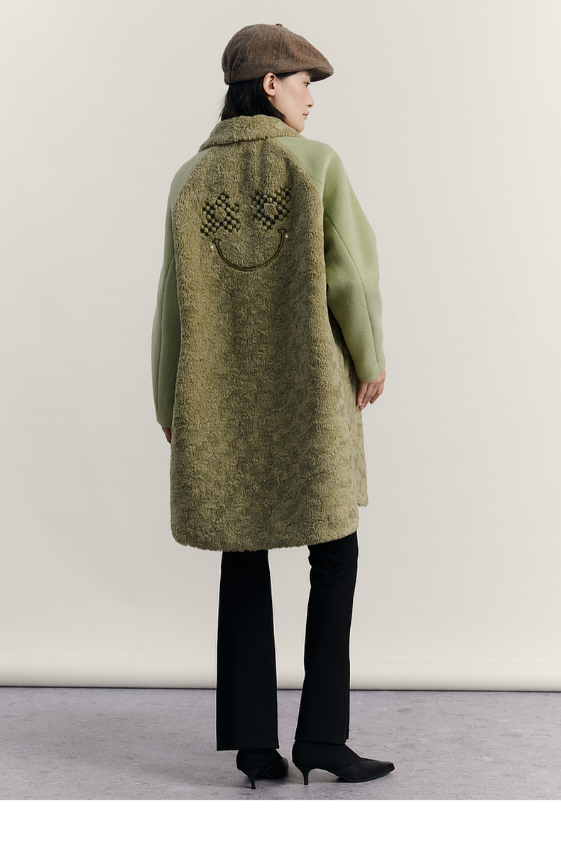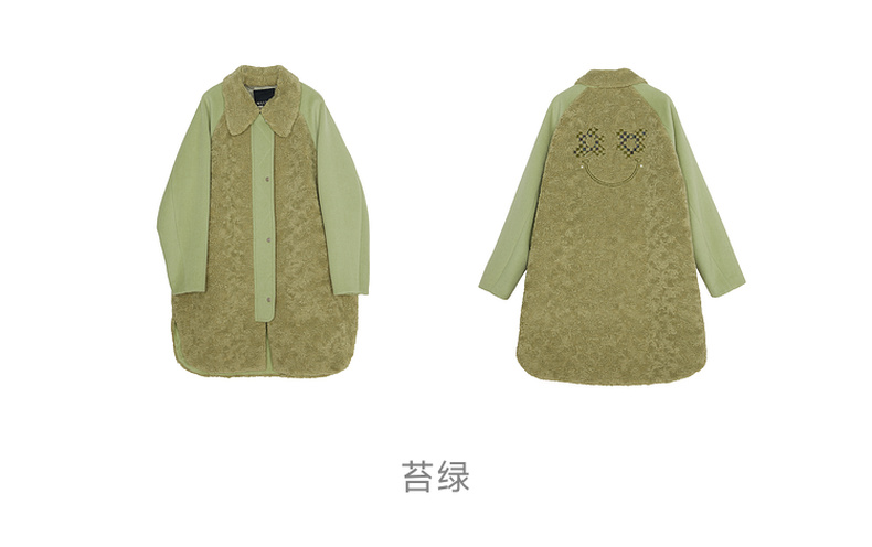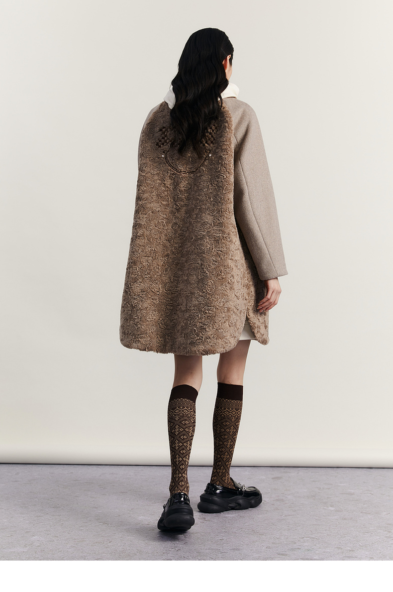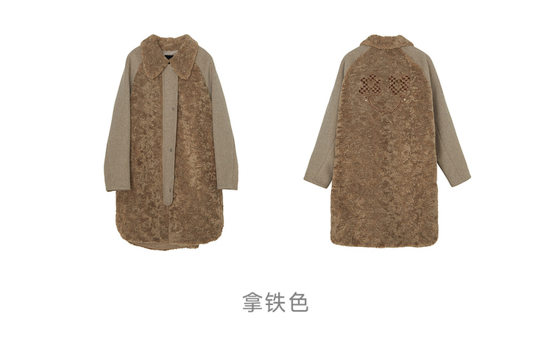 谜底毛毛拼接呢子大衣女2023冬特色绣花中长款外套女234MD1572