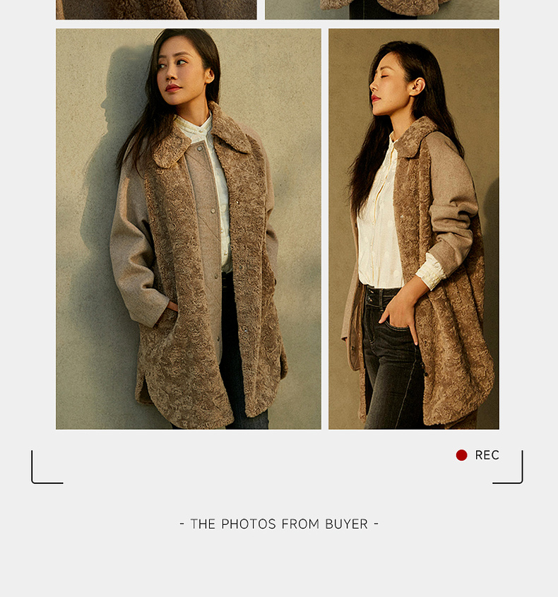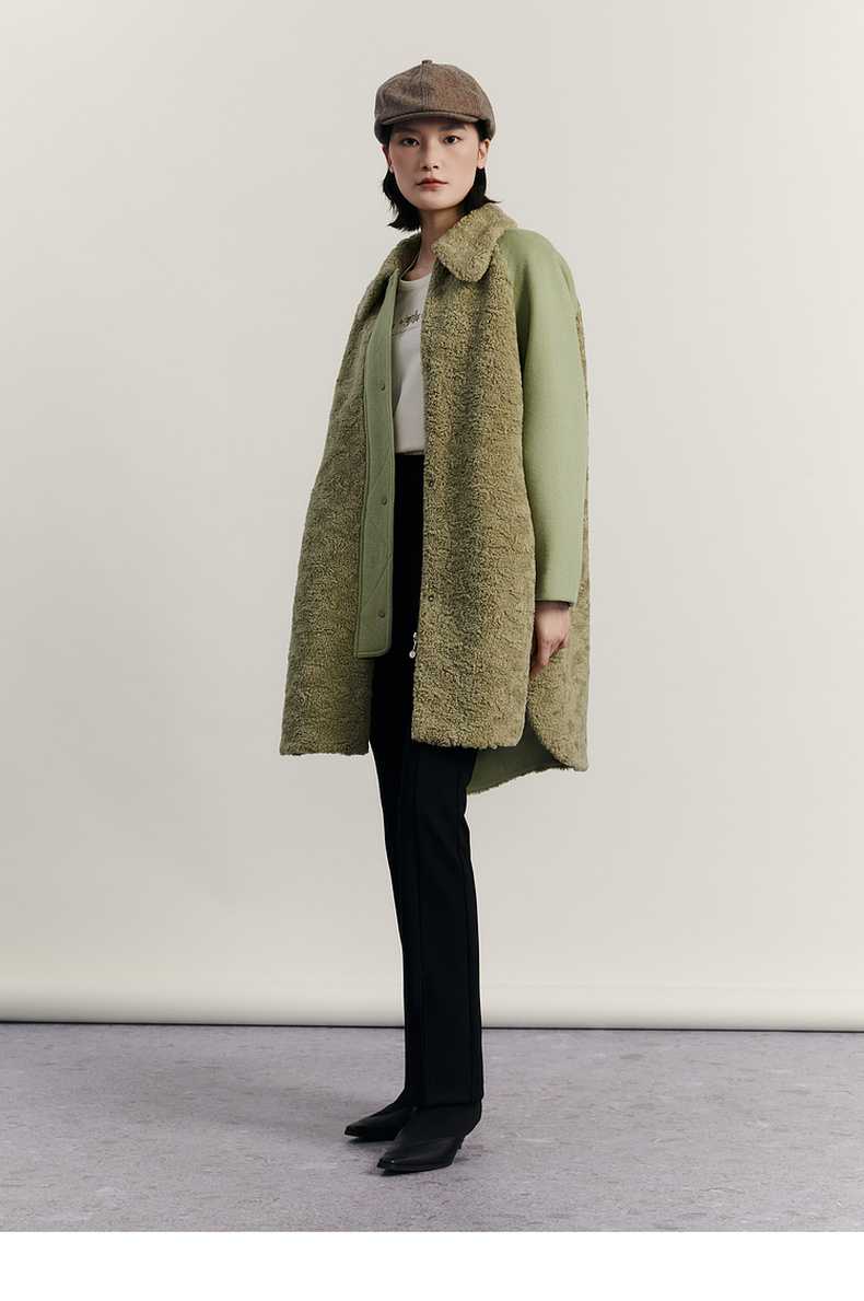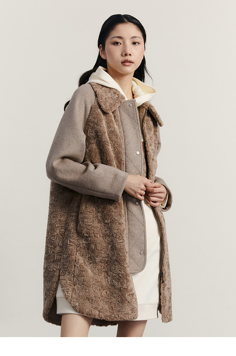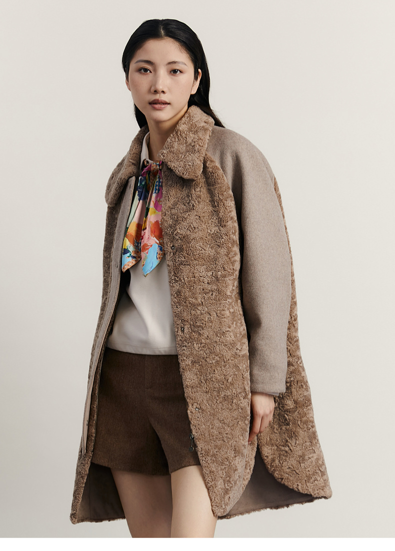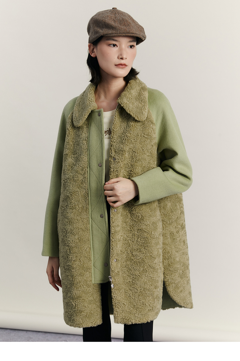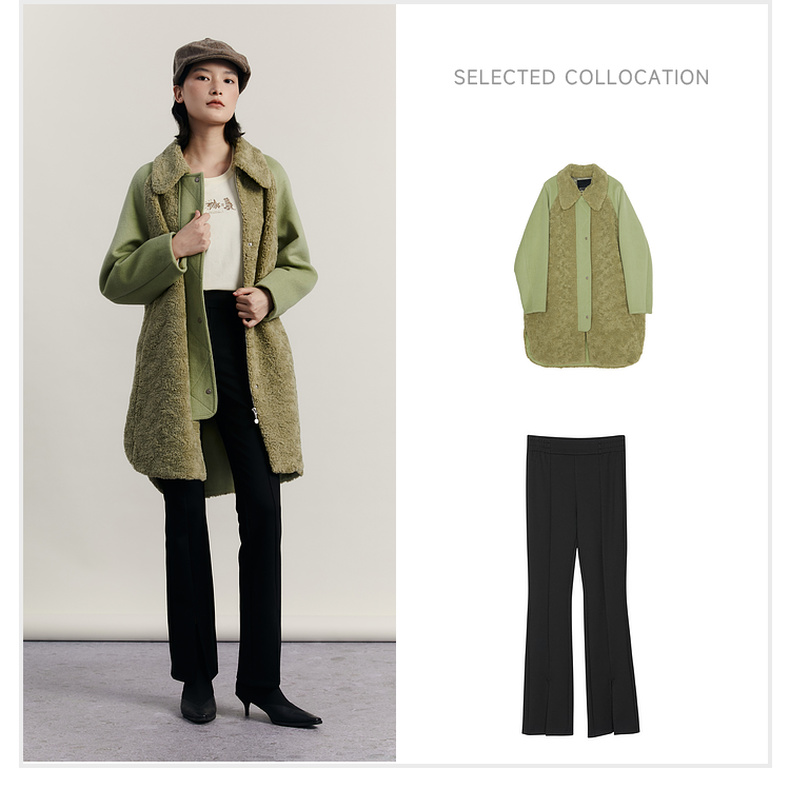 谜底毛毛拼接呢子大衣女2023冬特色绣花中长款外套女234MD1572