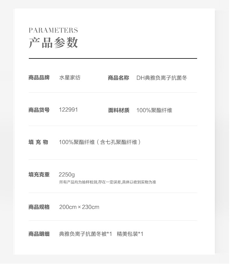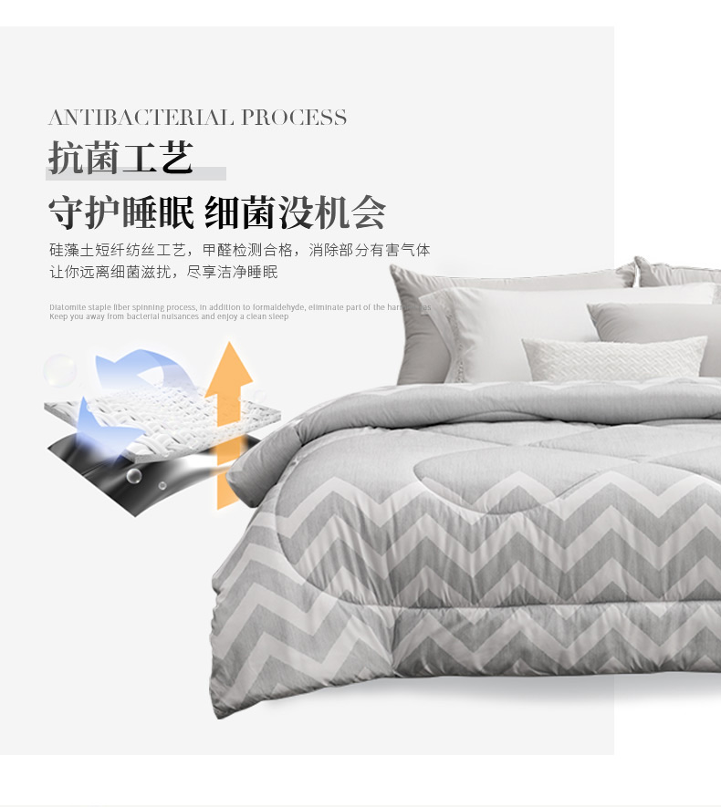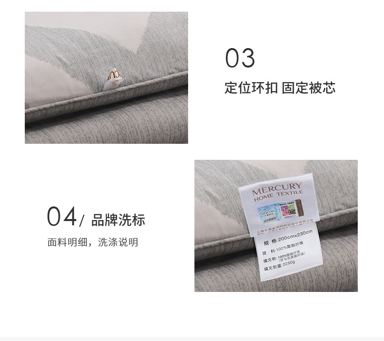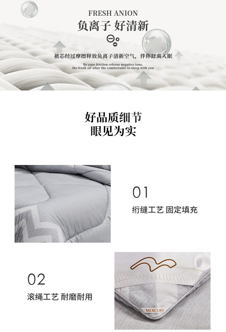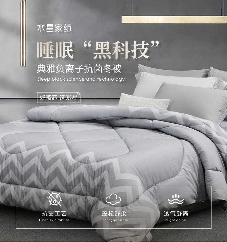 水星家纺 典雅负离子抗菌冬被2250g 内含七孔聚酯纤维和硅藻土纤维