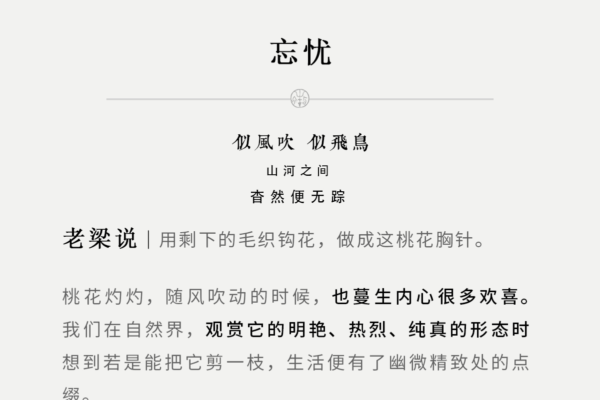 - 让内心温暖,让情感自由。坚持传统的手工作物,坚持匠心的制作精神。