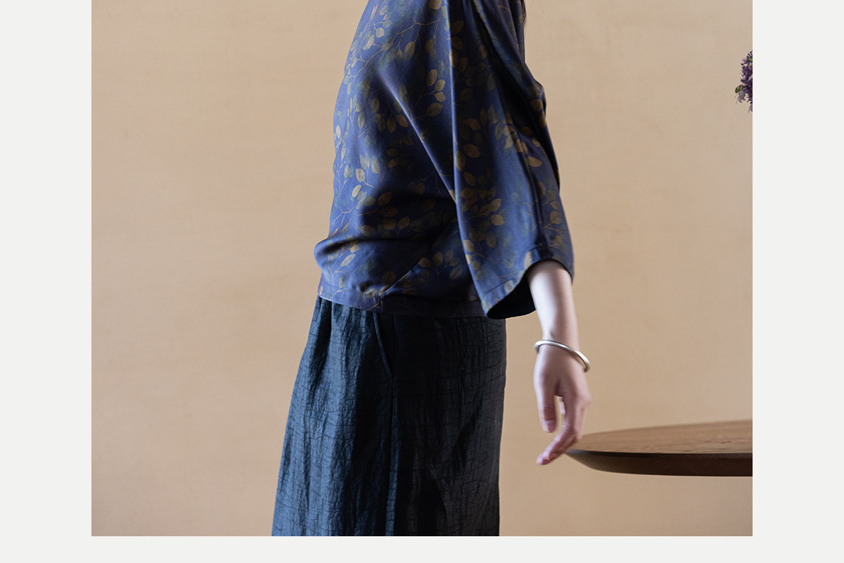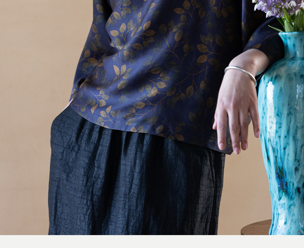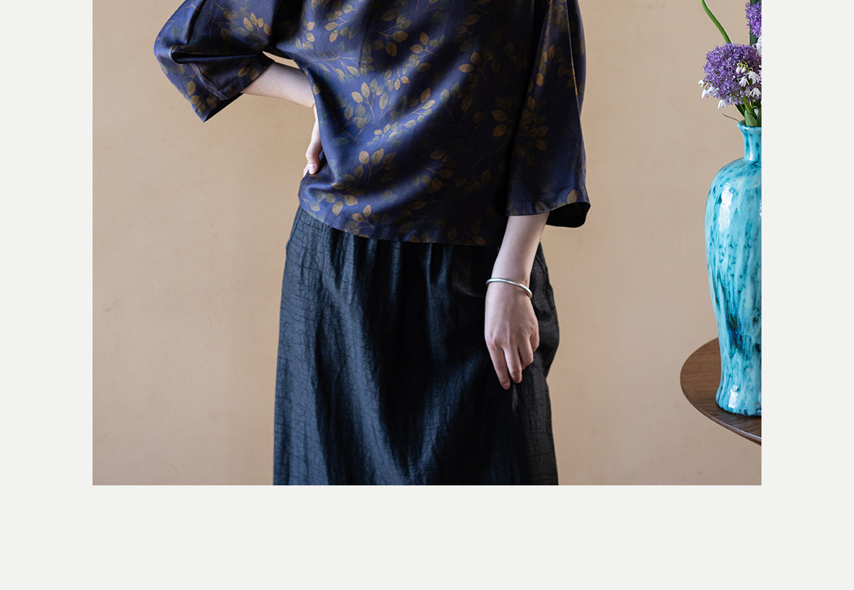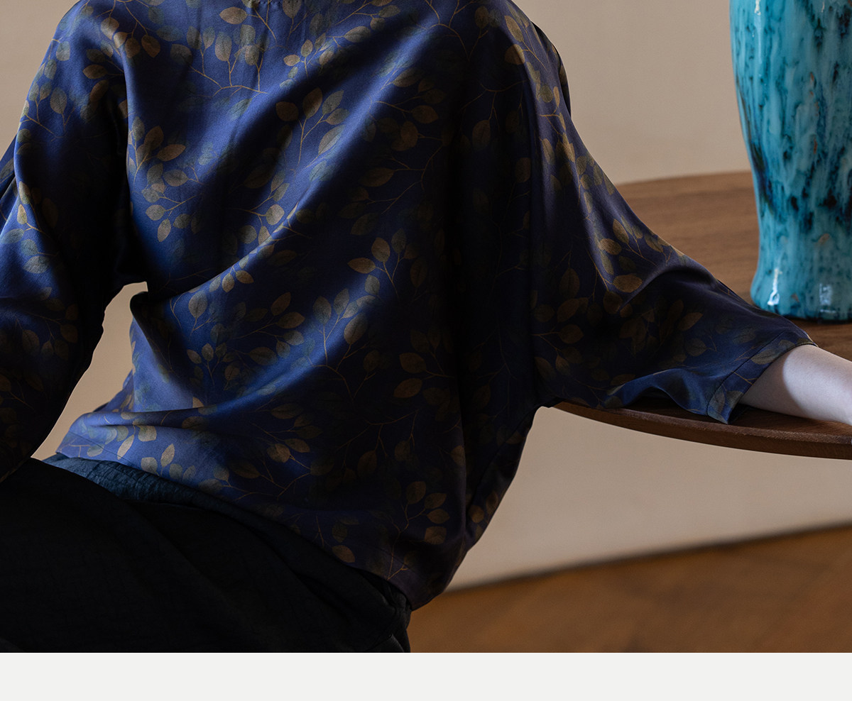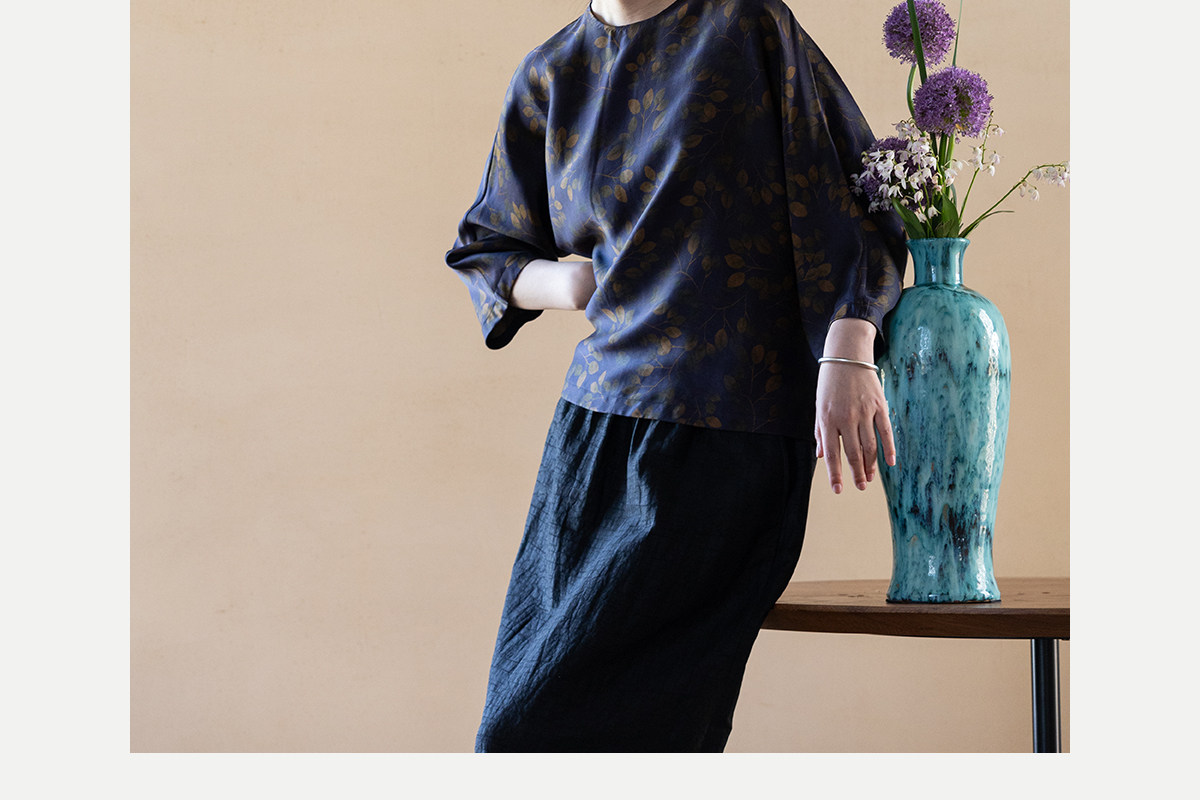 牧衣游原创 38姆米重磅印染香云纱小衫禅意复古宽松套头衫 玄琛
