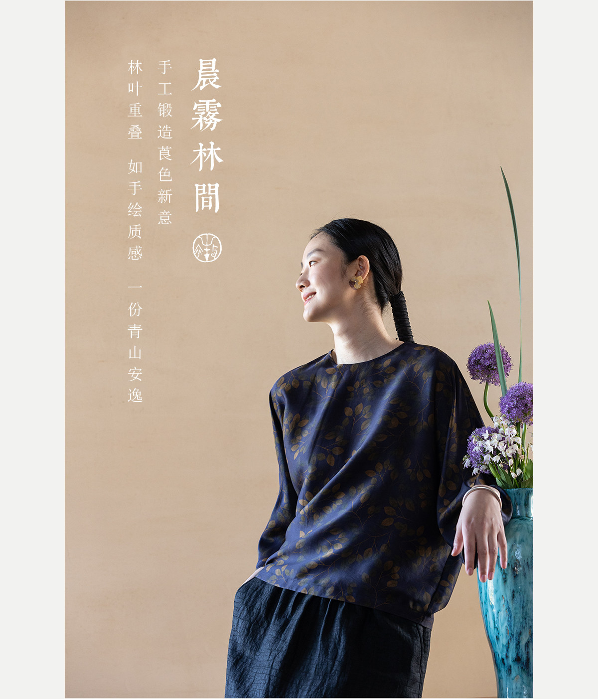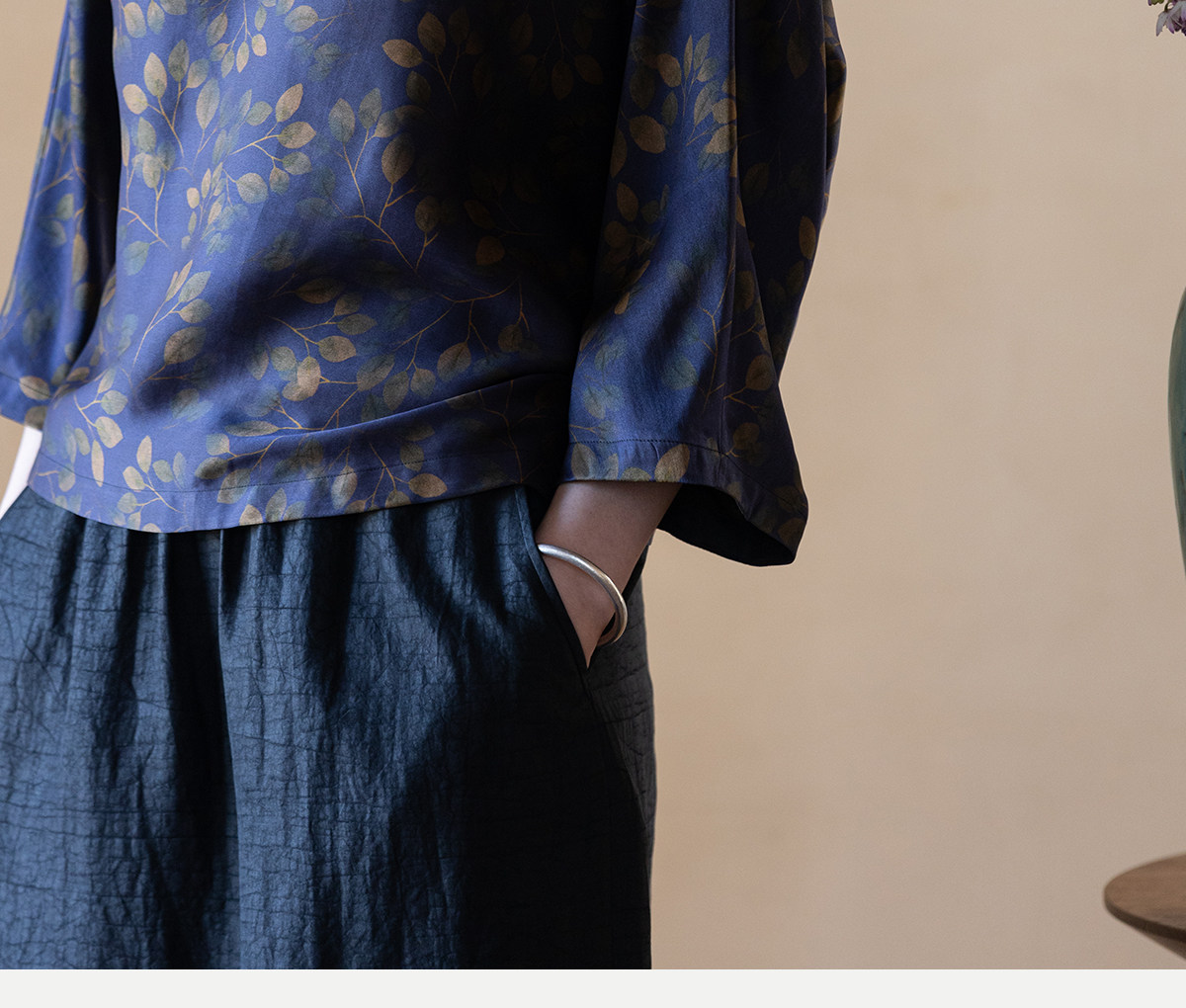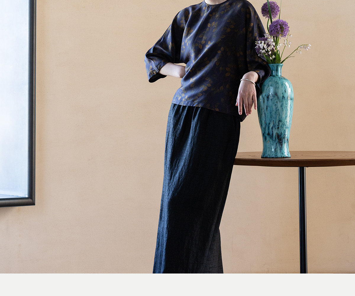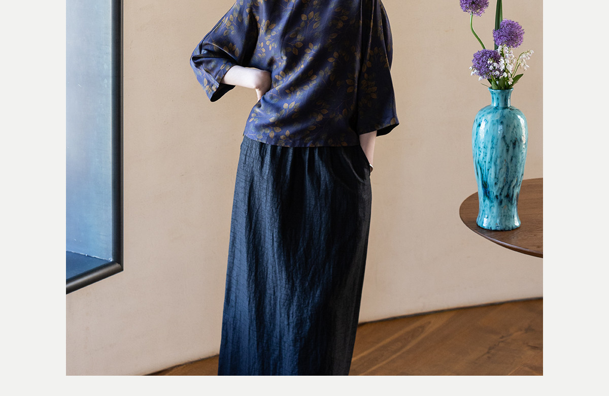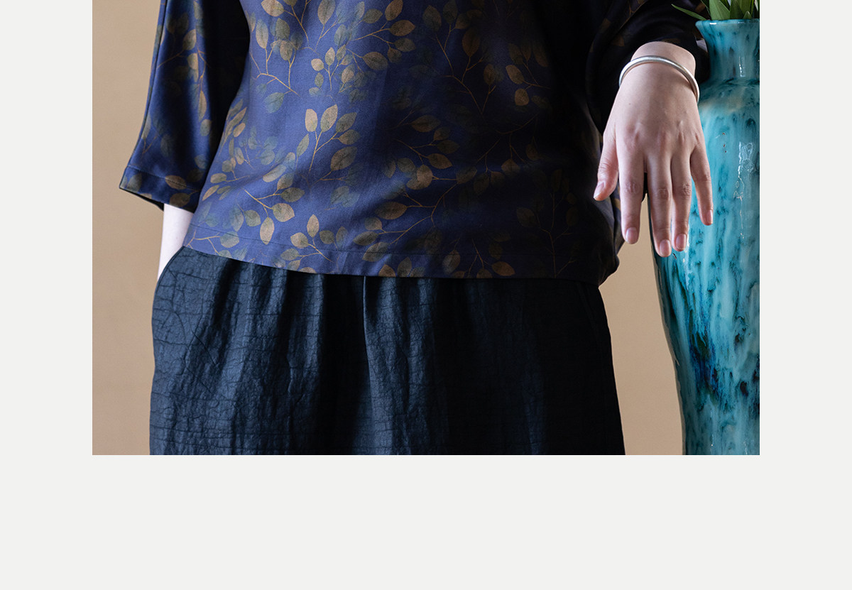 牧衣游原创 38姆米重磅印染香云纱小衫禅意复古宽松套头衫 玄琛