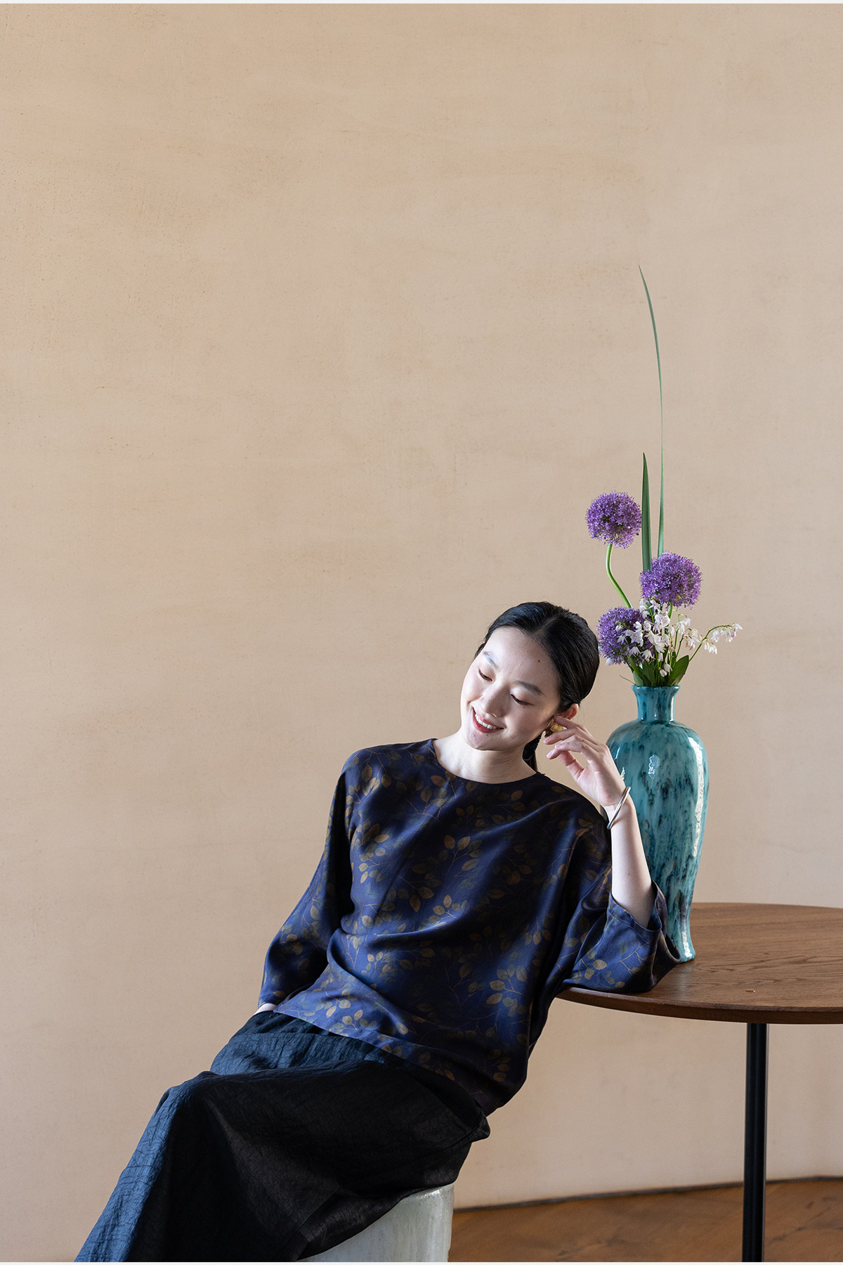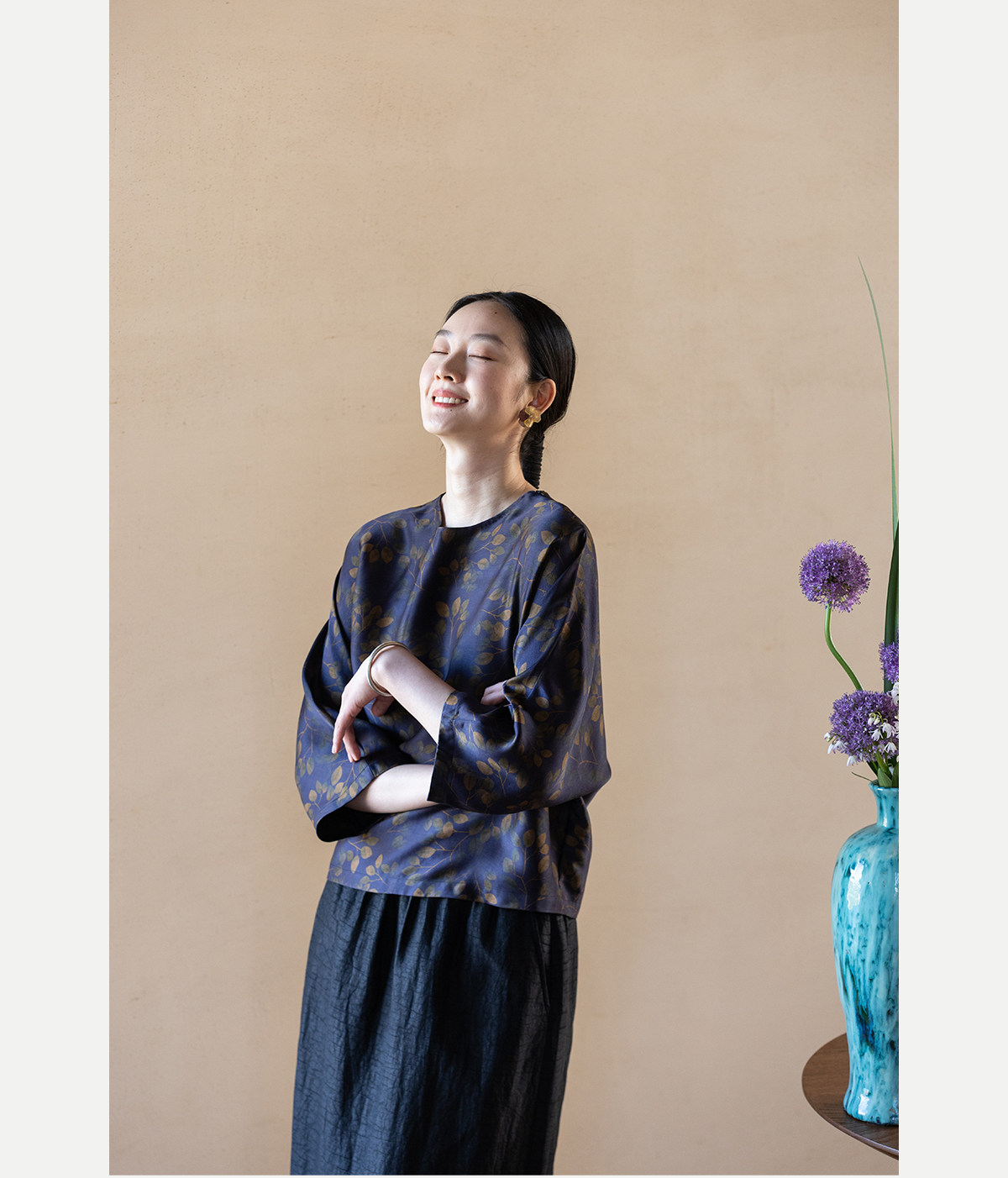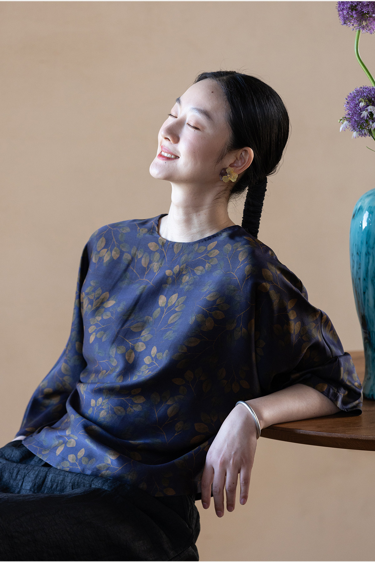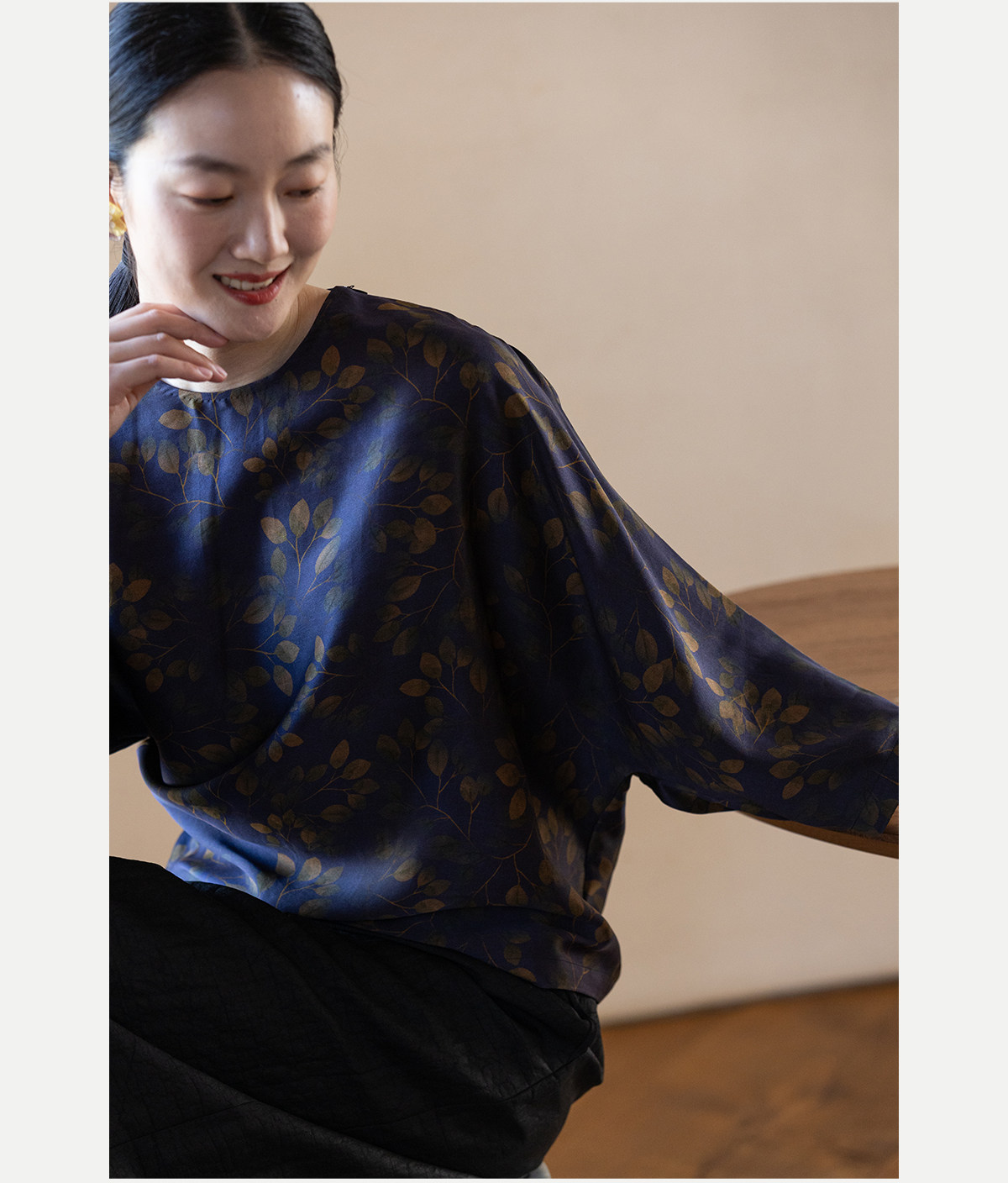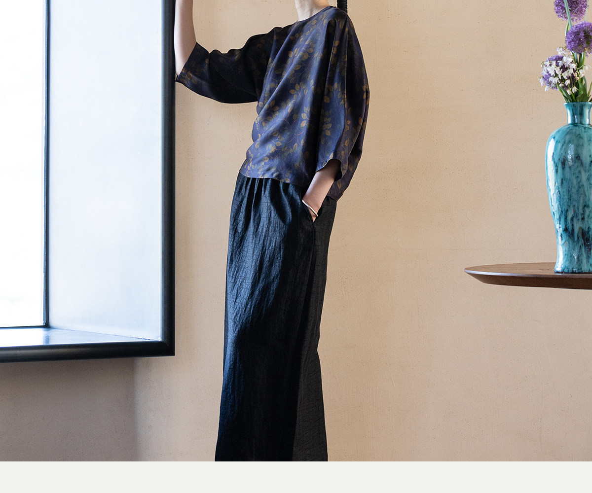 牧衣游原创 38姆米重磅印染香云纱小衫禅意复古宽松套头衫 玄琛