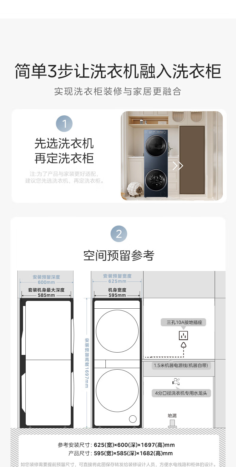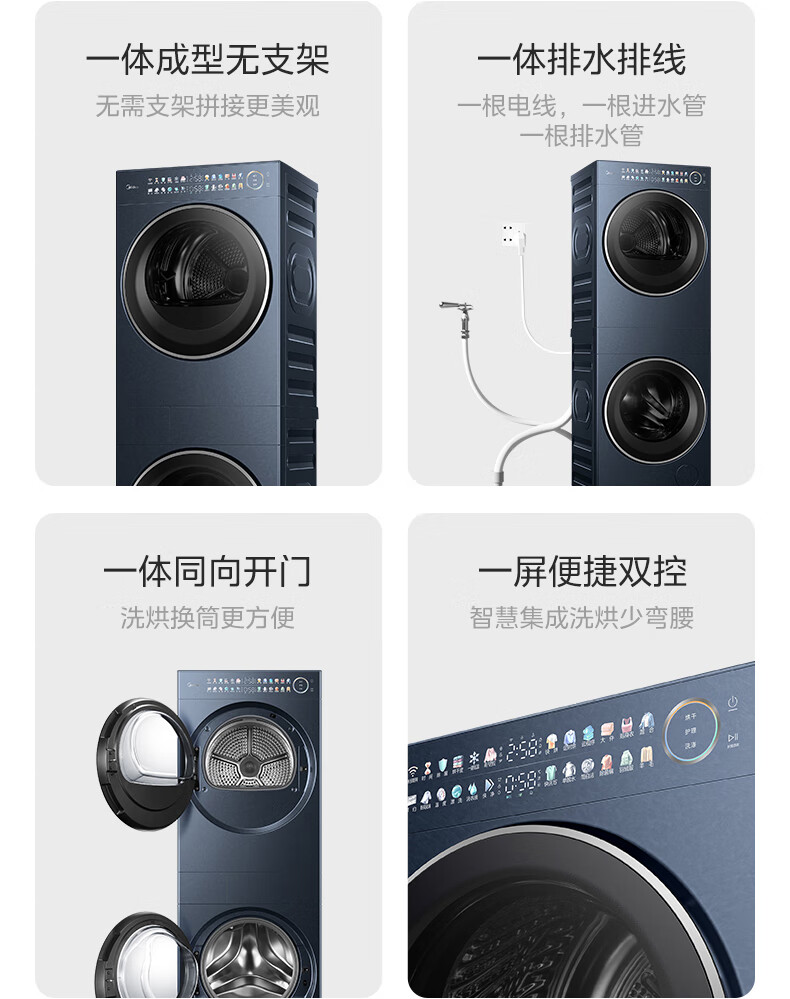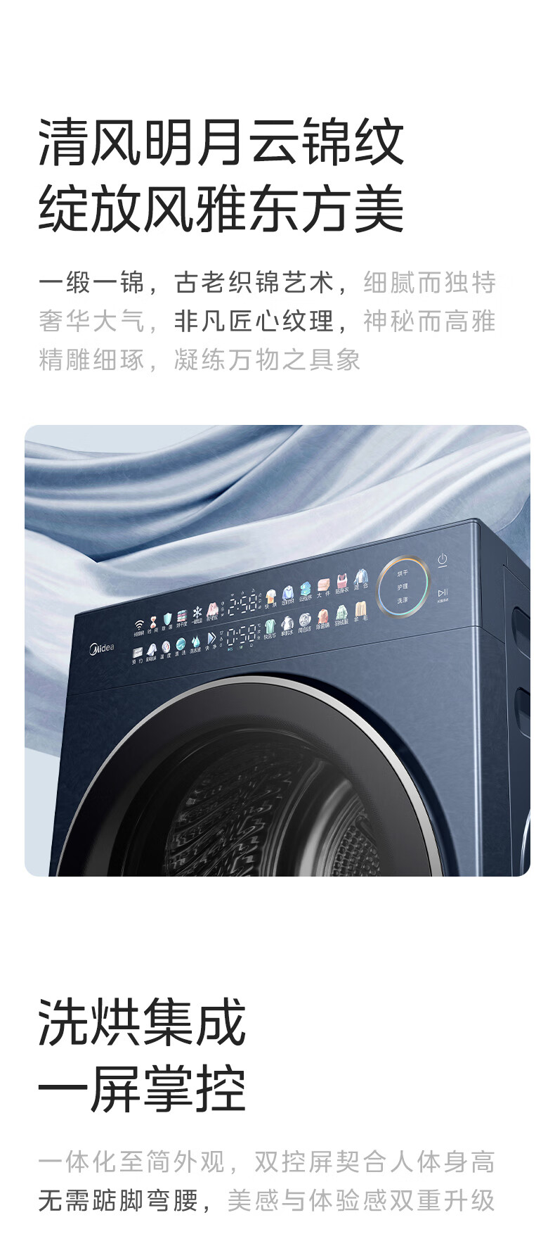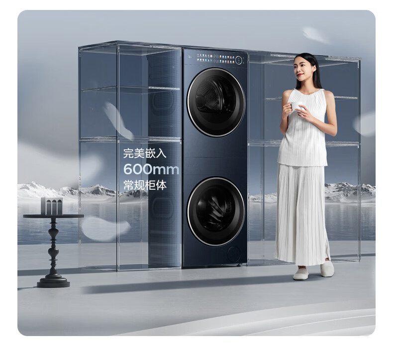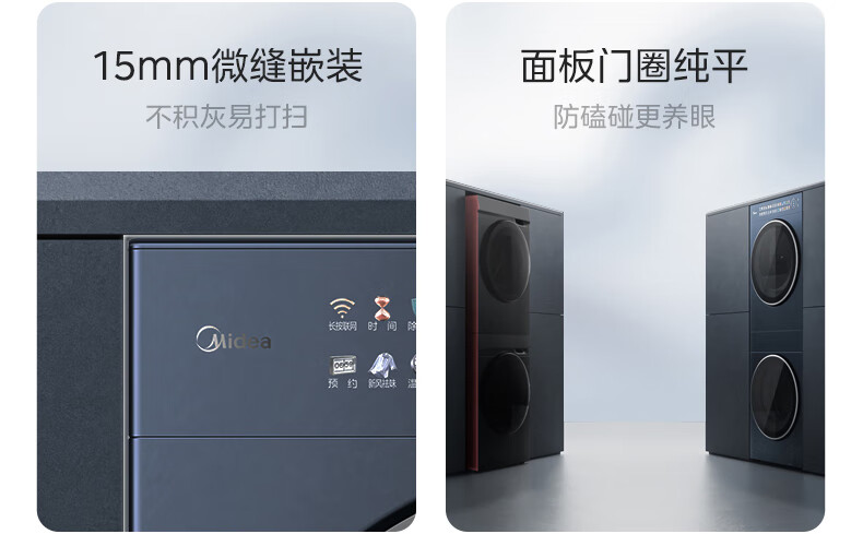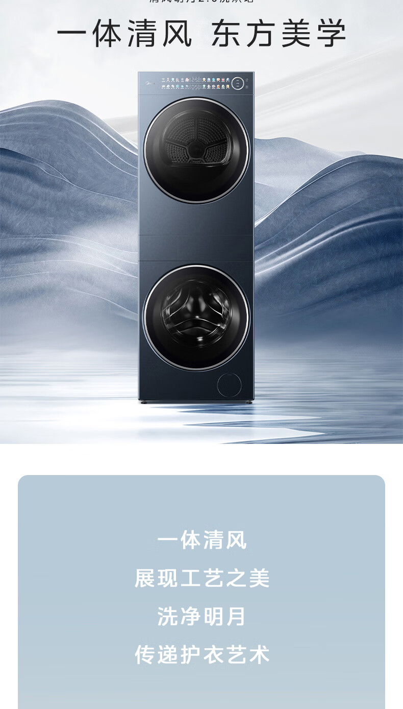 美的洗烘套装MGH20A(洗)-N+MGH20L6(护) 10kg滚筒洗衣机+变频热泵烘干机纯平全嵌【清风明月2.0洗烘塔】