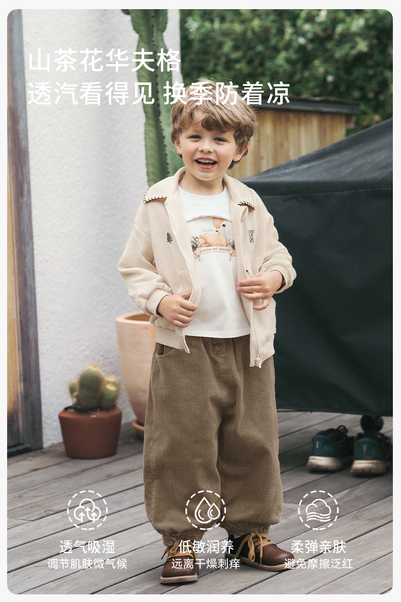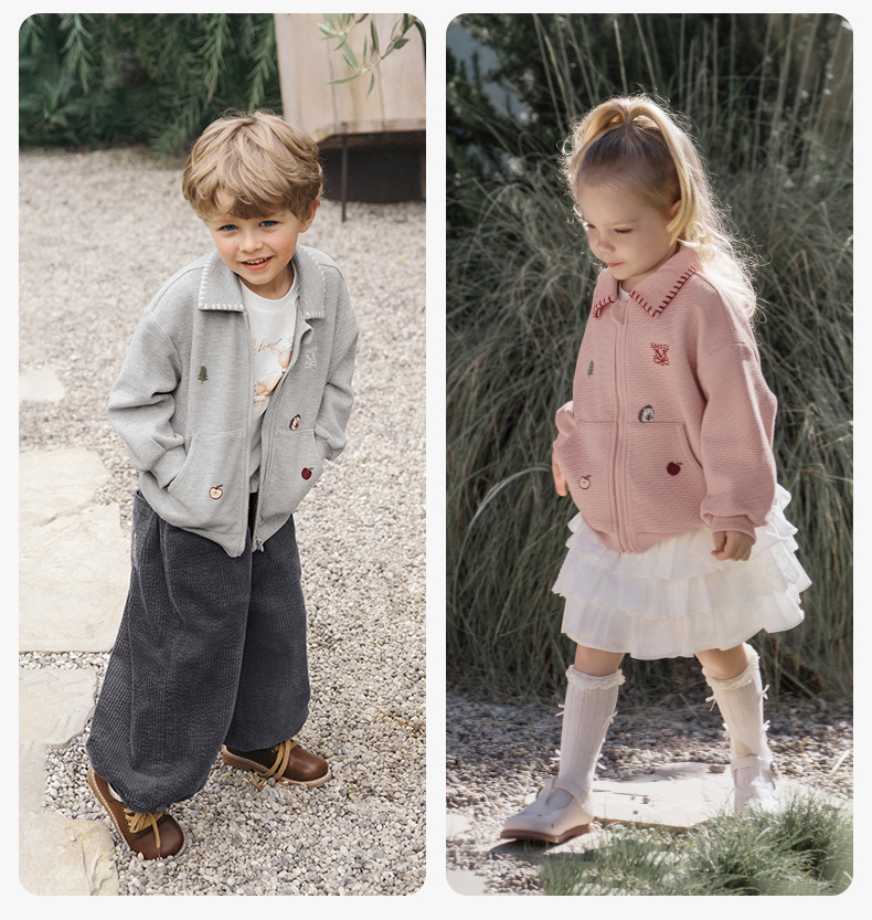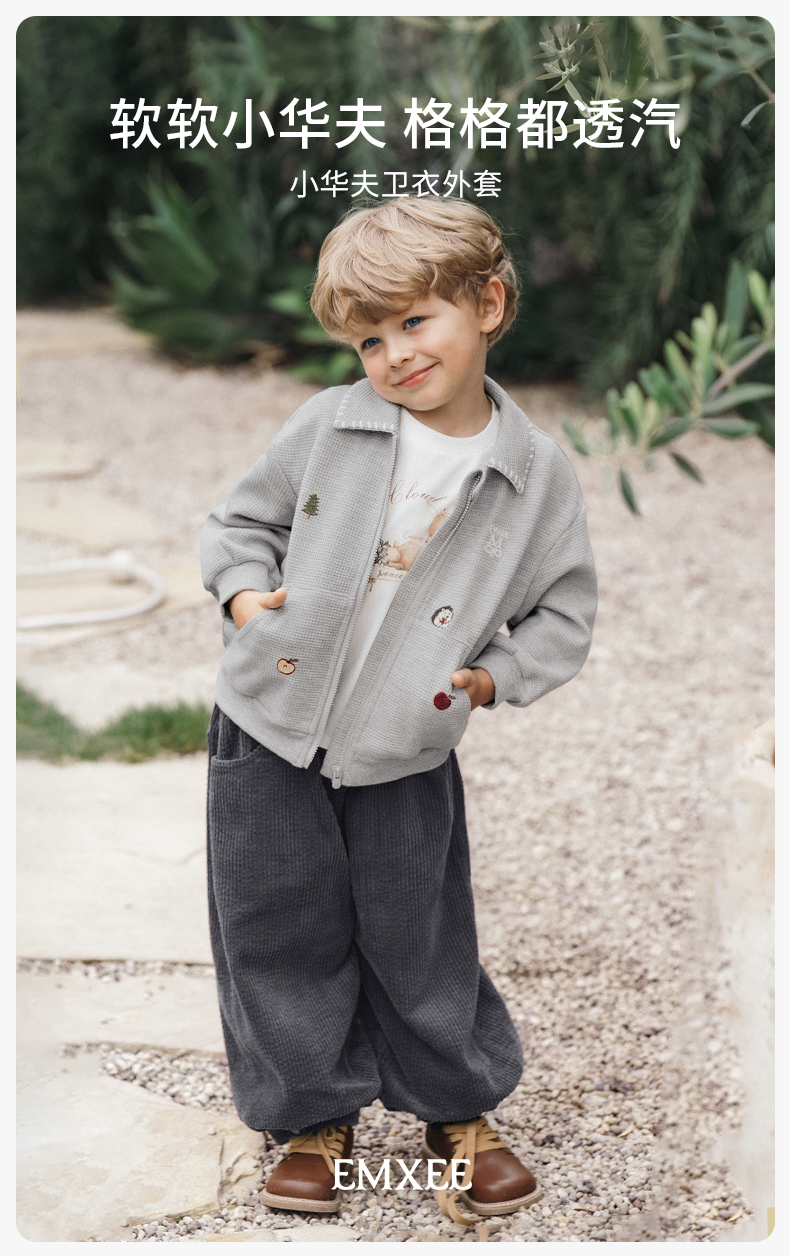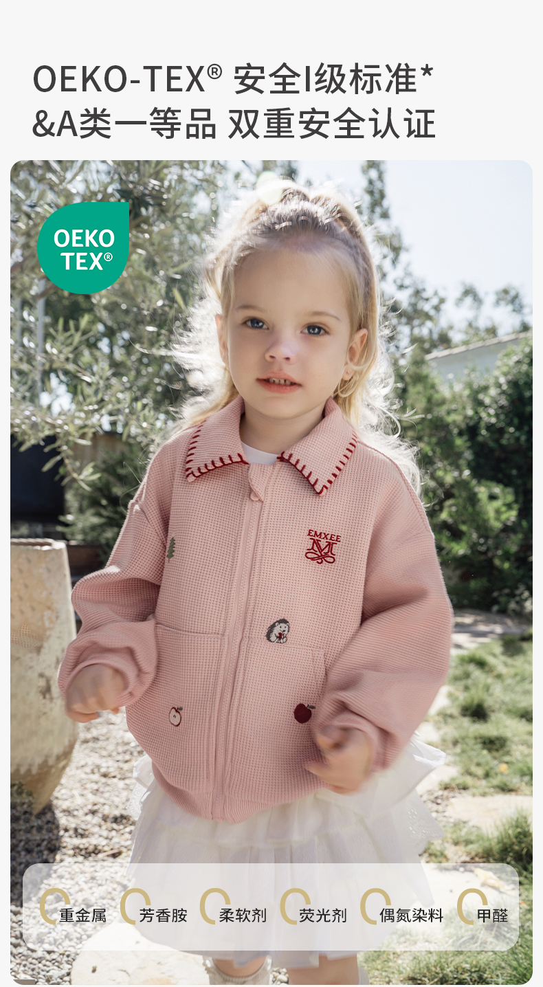 【宝宝服饰】嫚熙童装2025新款外套秋款男女童华夫格上衣