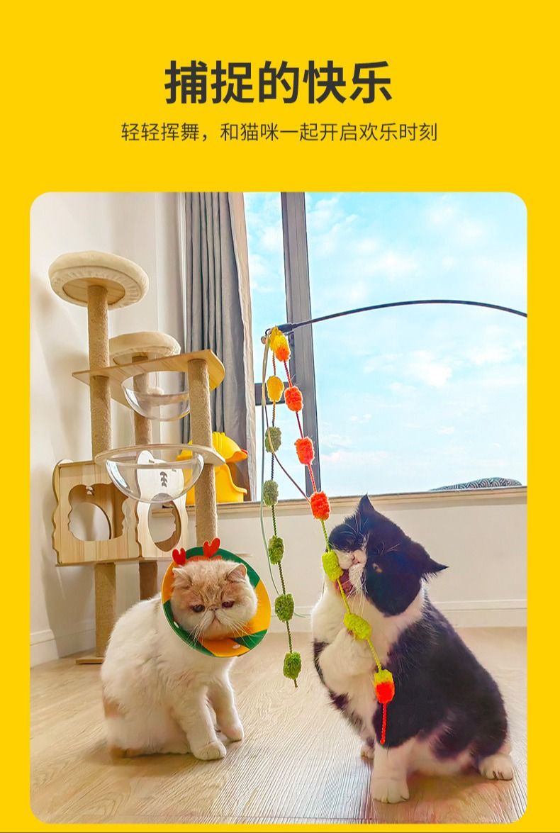 节节高毛绒球流苏穗逗猫棒猫咪互动解闷铃铛玩具颜色随机/个