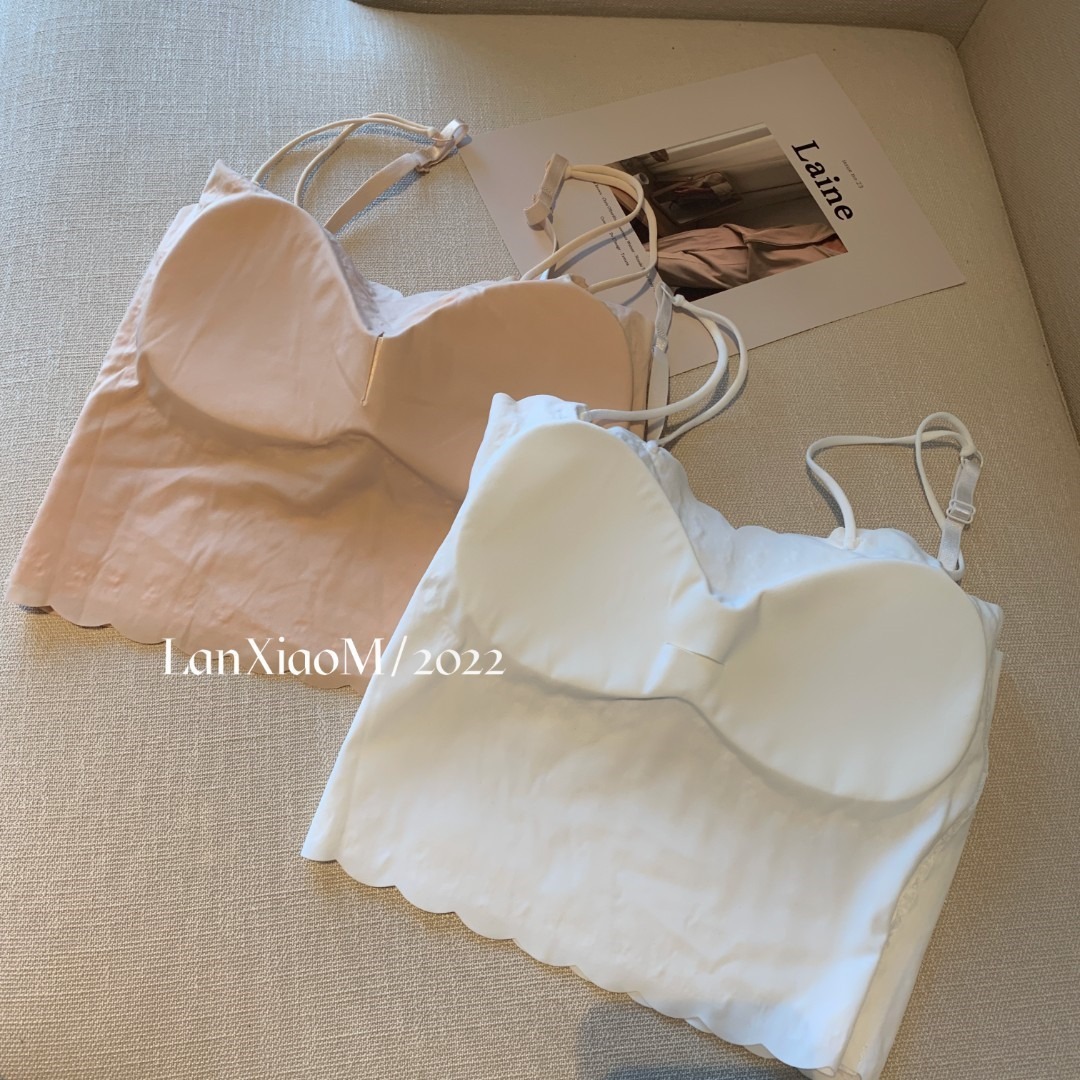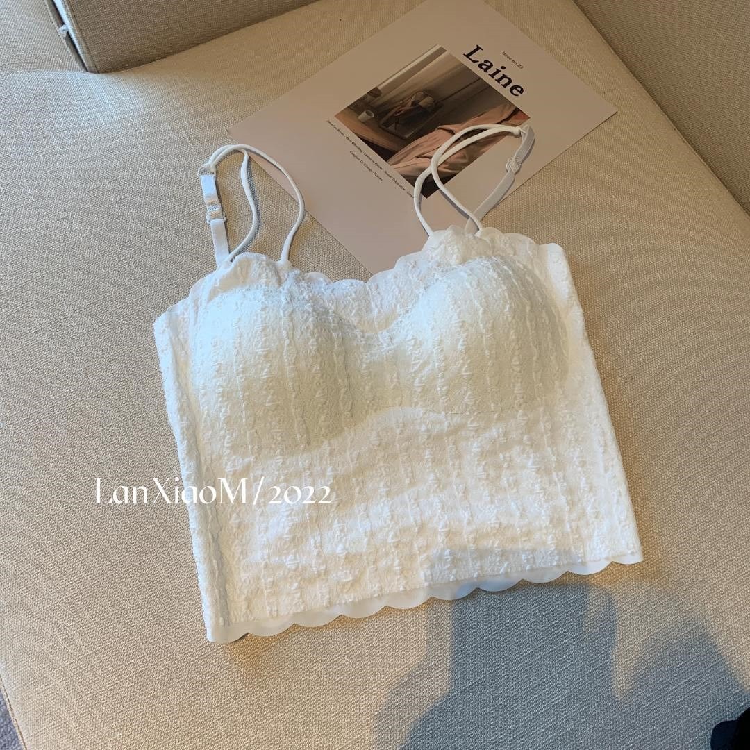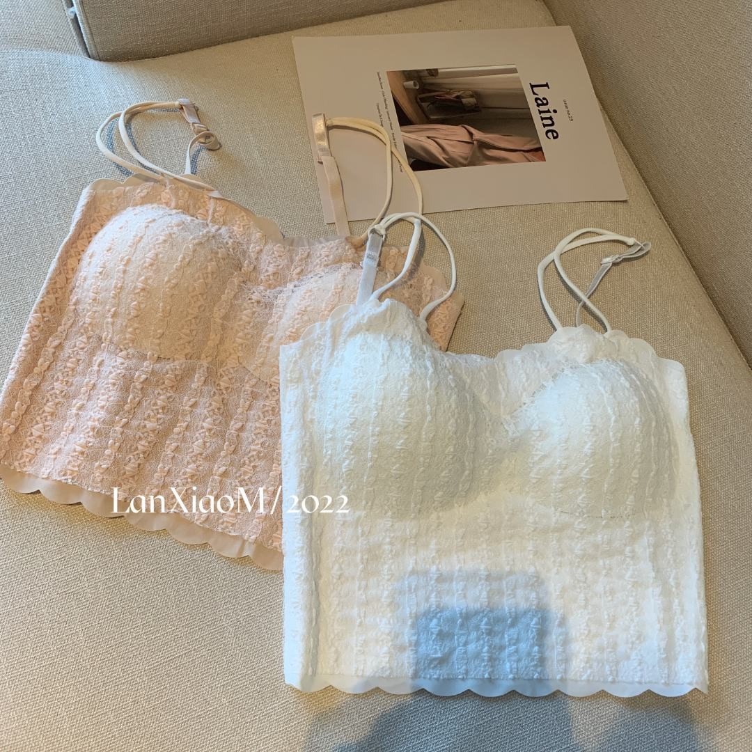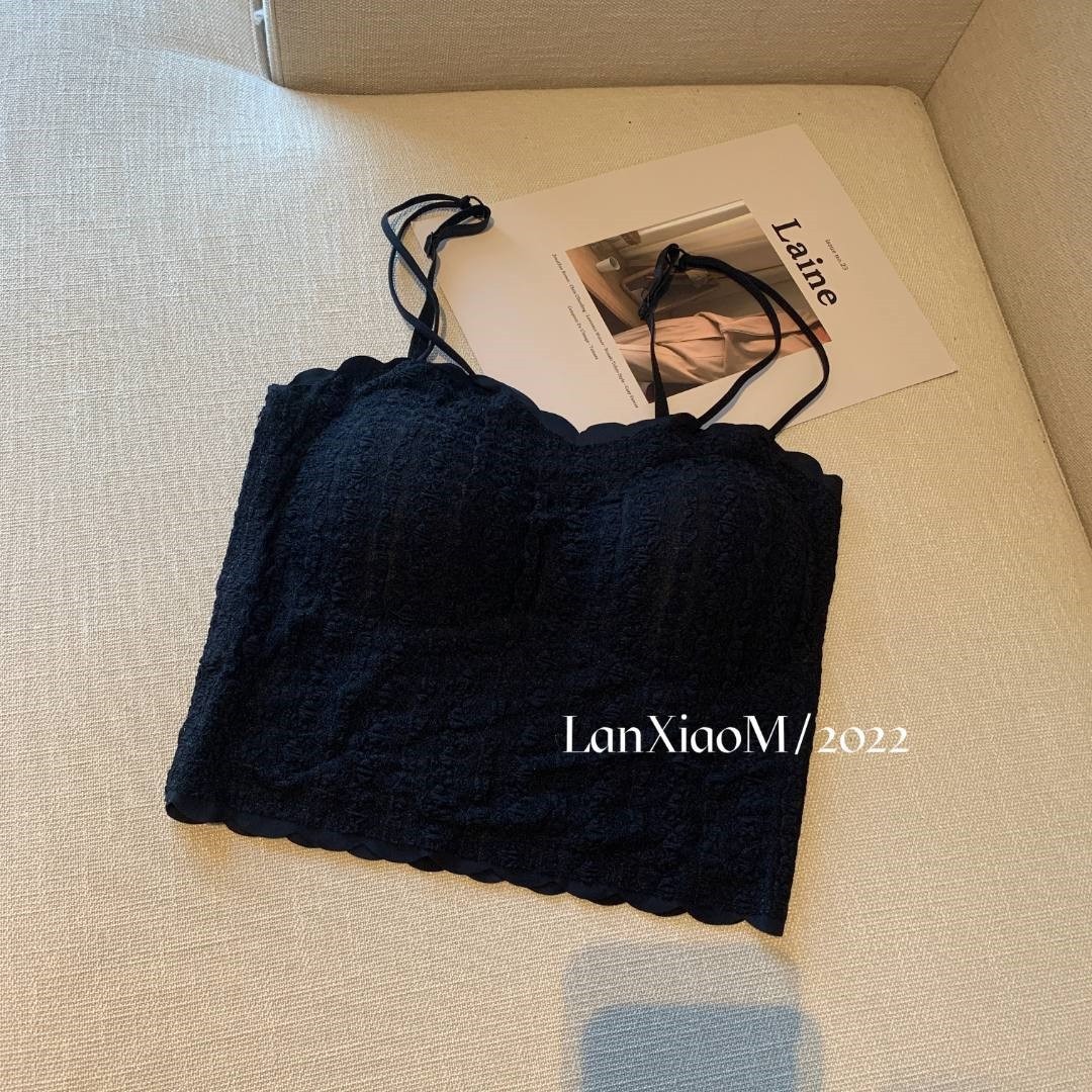 抖音爆款吊带背心蕾丝泡泡美背抹胸带胸垫裹胸短款百搭打底懒小毛