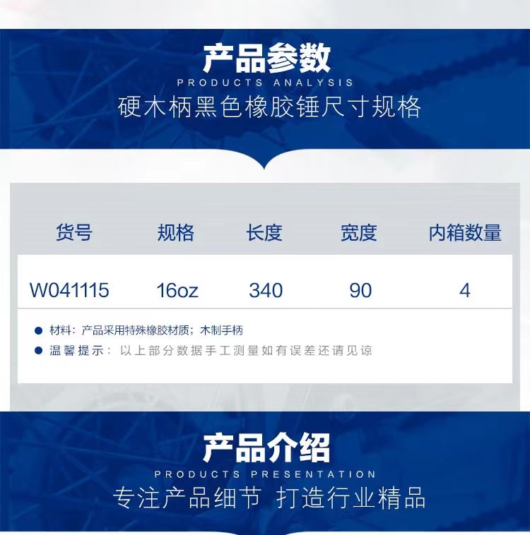 万克宝硬木柄黑色橡胶锤16OZ