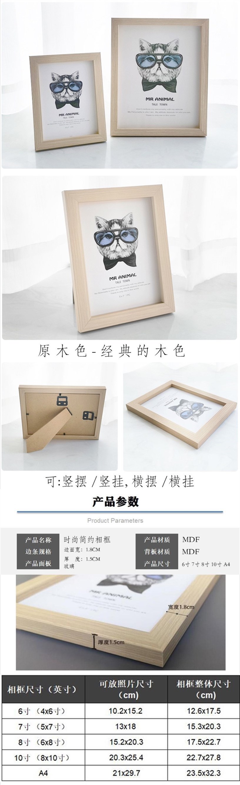 木质感相框 极简相框摆台摆件框架挂墙照片做成相框墙欧式影楼像框6寸7寸8寸10寸A4 1个