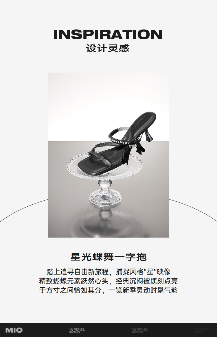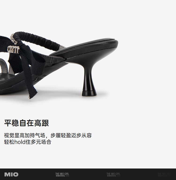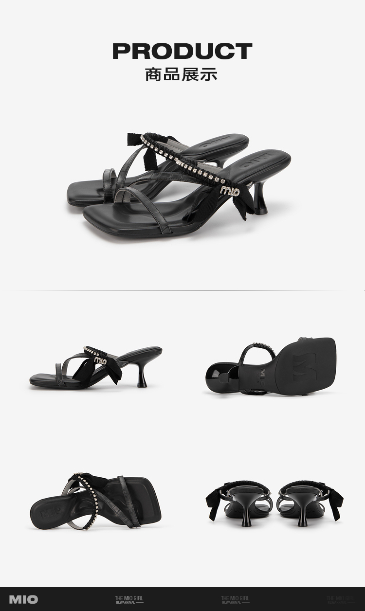 MIO米奥夏季方头时尚拖鞋简约一字带时髦闪钻高跟一字拖女M243141307