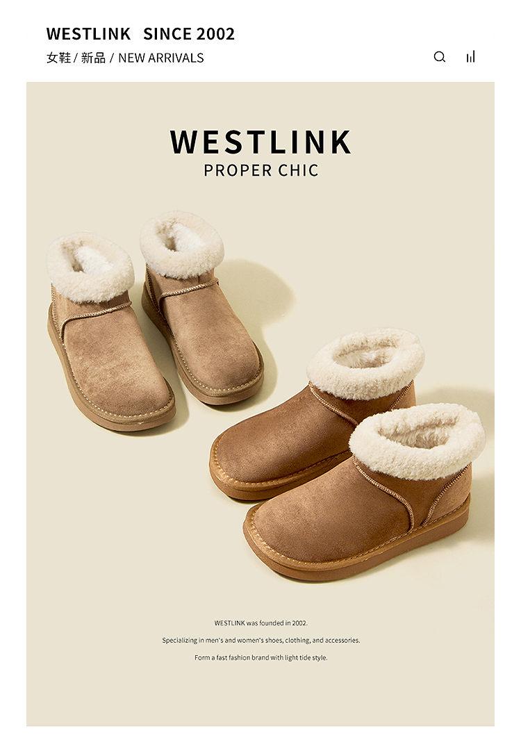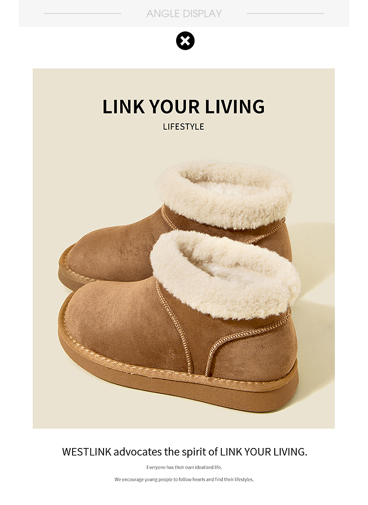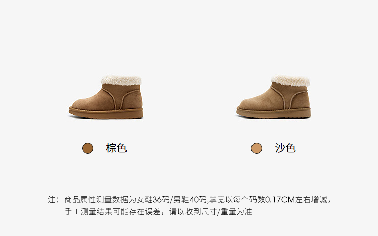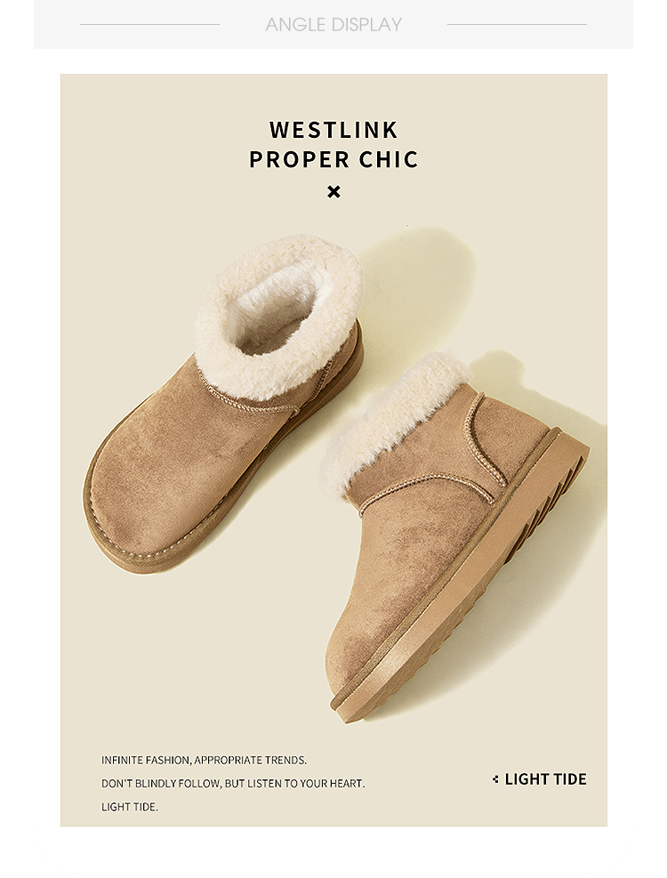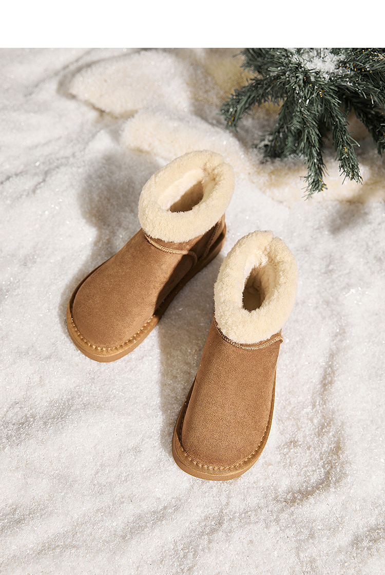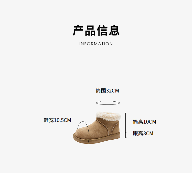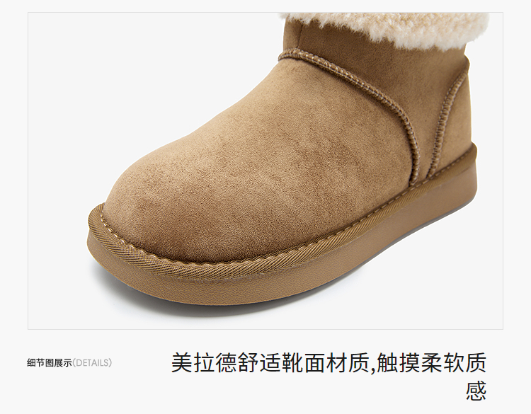 西遇毛毛保暖中筒翻毛雪地靴子女新款棉鞋冬季厚底休闲短靴V2457338