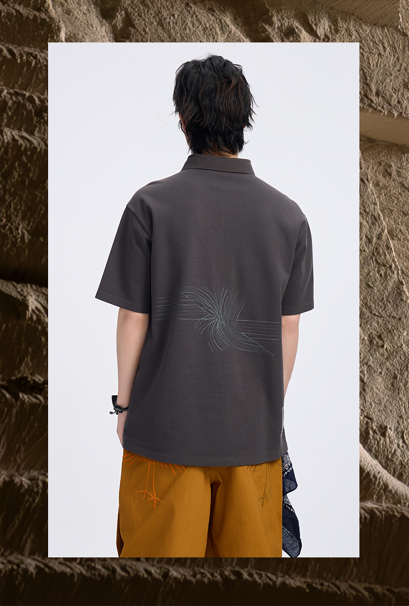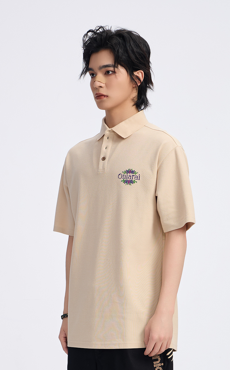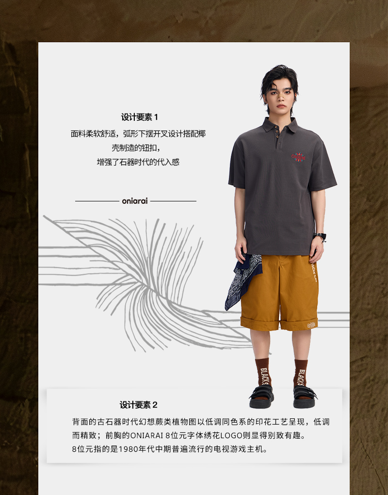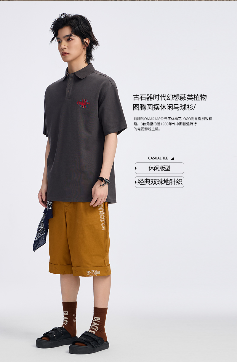 ONIARAI/鬼洗古石器时代幻想蕨类植物图腾圆摆休闲马球衫 A840013