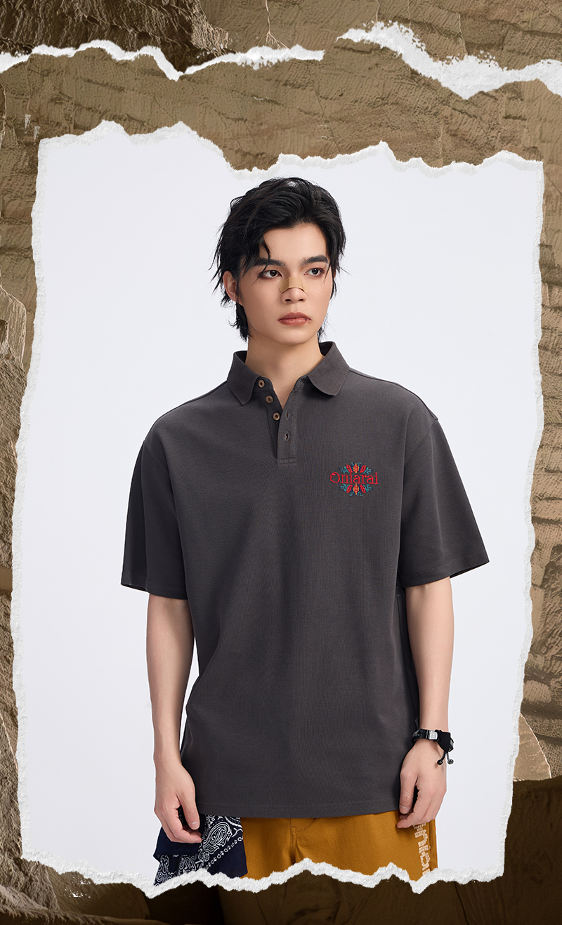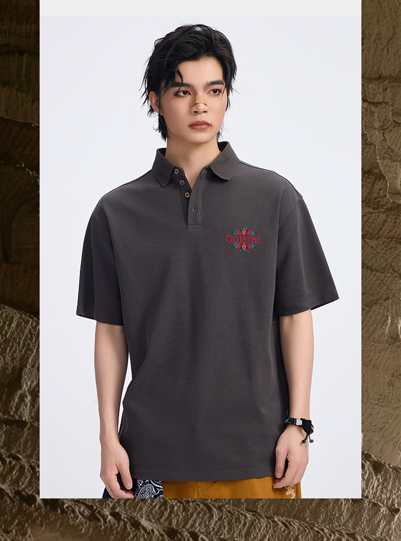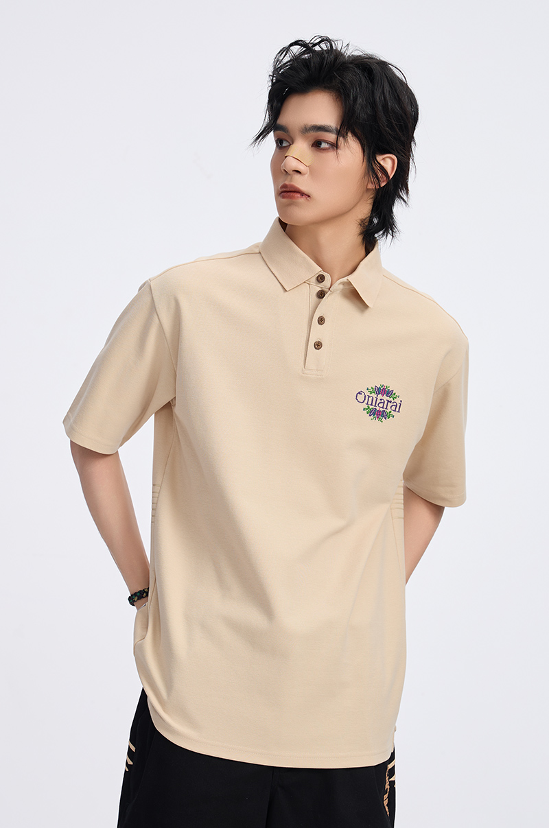 ONIARAI/鬼洗古石器时代幻想蕨类植物图腾圆摆休闲马球衫 A840013