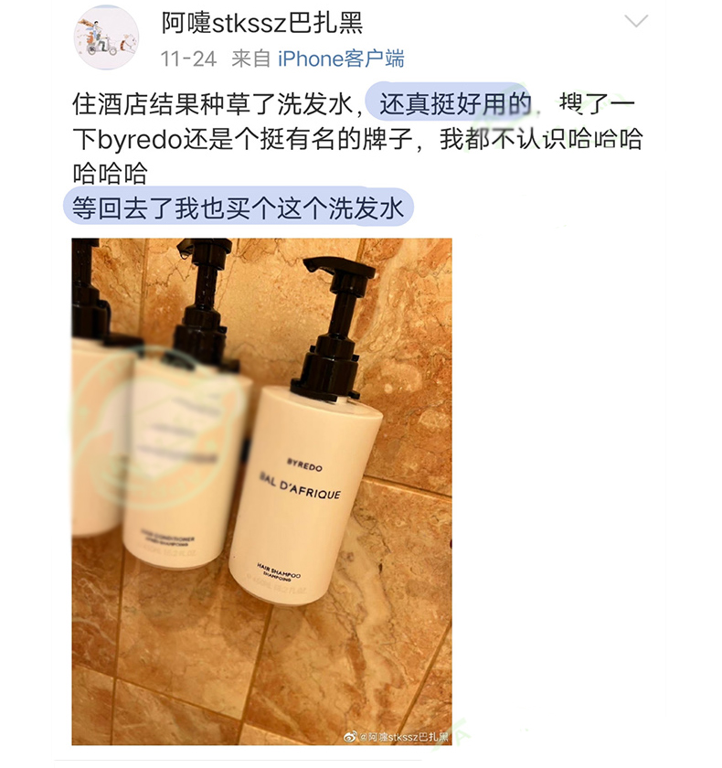 【商品名称】瑞典BYREDO百瑞德沙龙香水洗发水/沐浴露/身体乳/护发素450ML