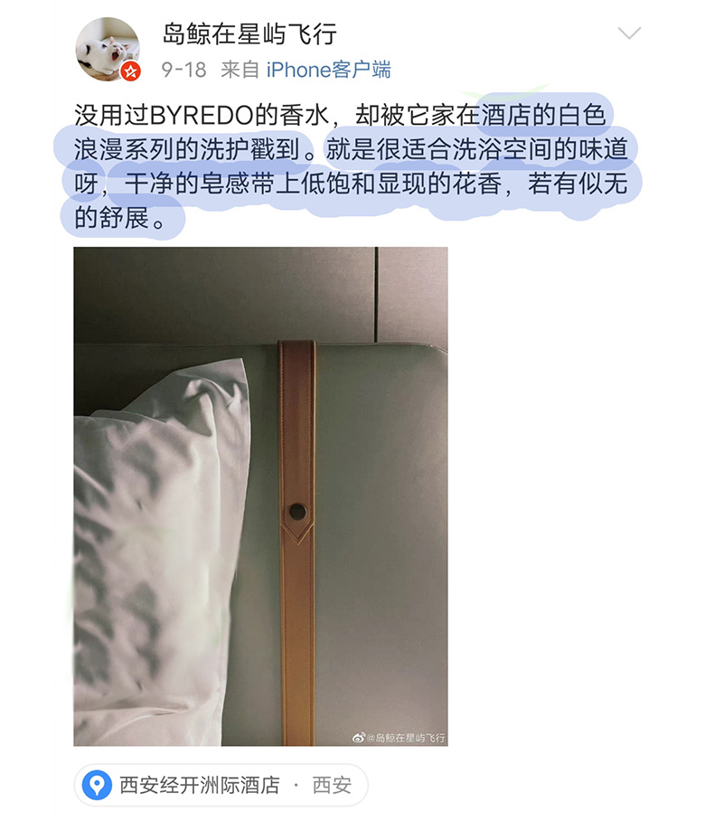 尾调的木质麝香给整体添加一分安静的温柔感