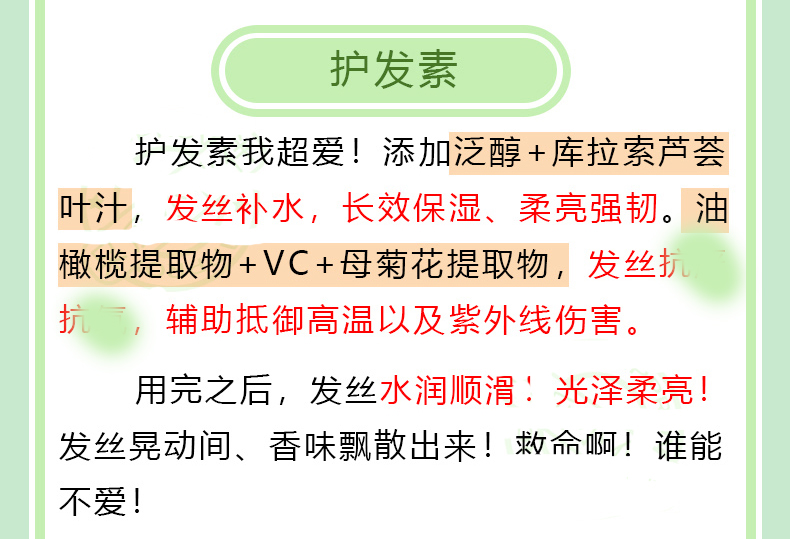 护发素滋润发丝、柔顺秀发
